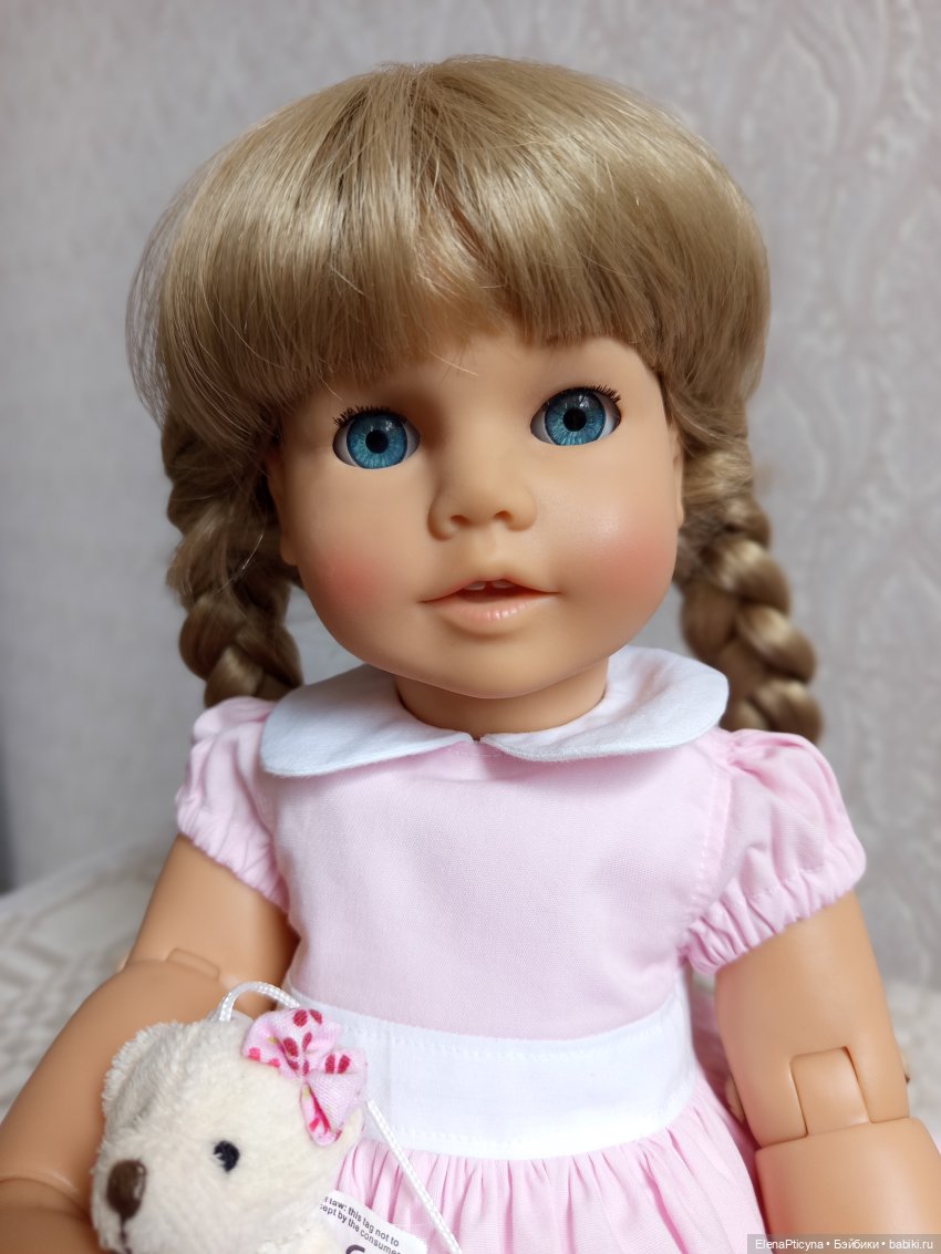 Очень давно хотела куклу от Engel-Puppen и вот, наконец, на свой день рождения сделала себе подарок.Точный год выпуска неизвестен, но по ощущениям девочка из 90-х. Паричок уже с возрастом: волосы буквально крошатся мелкими частицами, почти как стеклярус. Думаю его заменить. Заказала уже трессы, жду и морально готовлюсь.