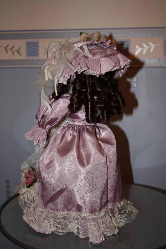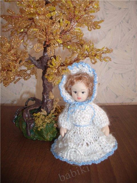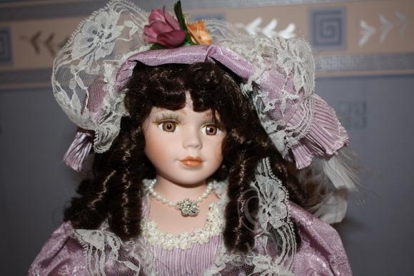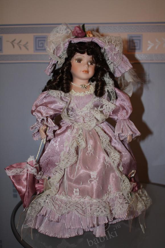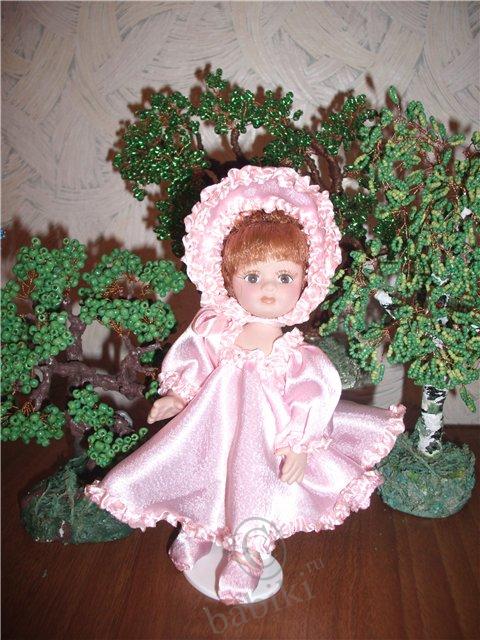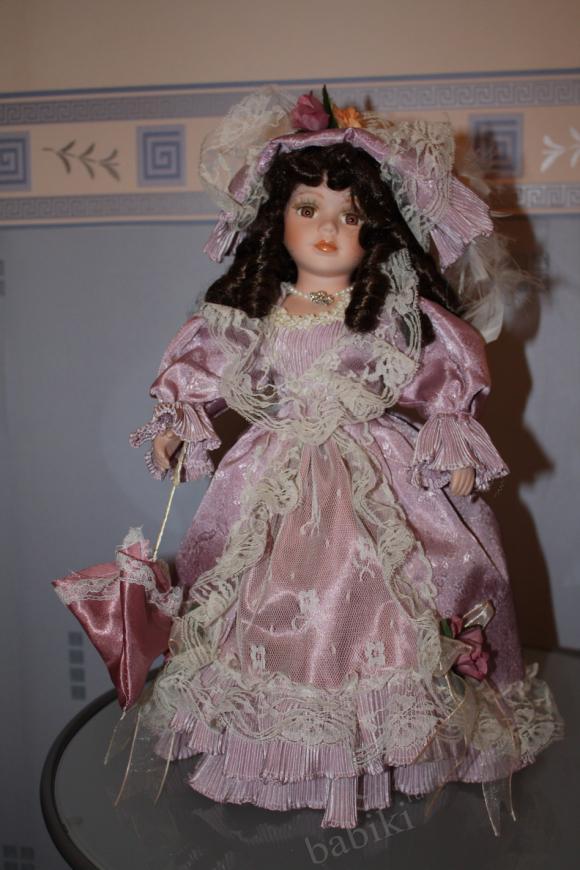 Китайские куклы, видимо, в разных «подвалах» изготовляют, я купила как-то маленькую фарфорочку, аккуратненькая, приличная куклёшка. Через пару недель в другом магазине точно такую же купила в подарок. Подруга еле её выдрала из коробочки, и всё на ней приклеено, под шляпкой вообще волос не было, короче — сплошное расстройство! Мне было очень неловко, но моя-то качественная была. А ведь на первый взгляд один в один, даже цвет волос и платья. Вот эта куклёшка, но уже переодетая.