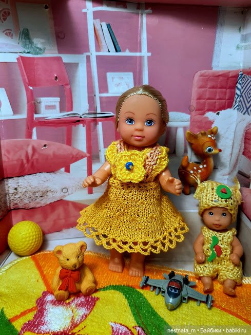 Мы его сняли сразу и одели домашнее — позаимствовали у Миры)Вот фото вместе с хозяйкой платья