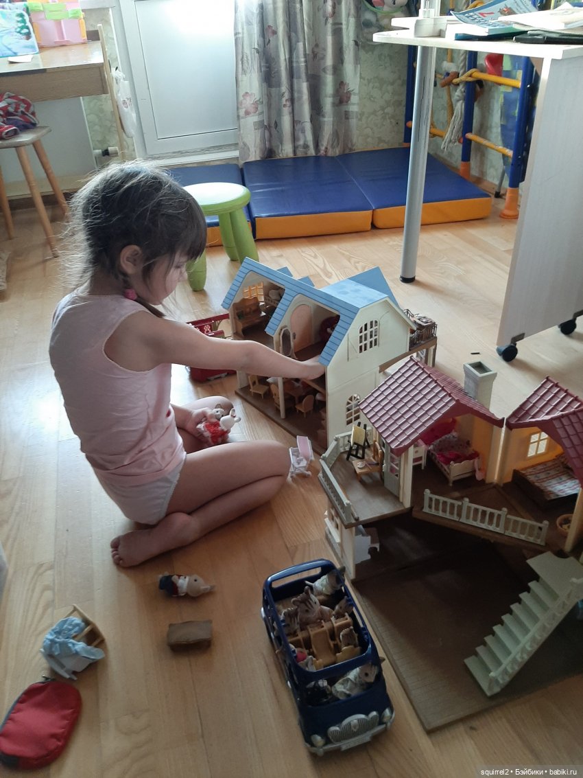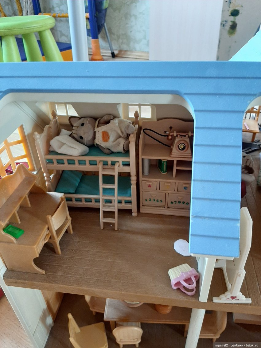 голубой правда сейчас от нас уехал, наш папа разрешил оставить только 1 домик, а еще и школа для них есть. Раньше домик с голубой крышей был сына, а с красной дочкин, но сыну уже 14 не играет в такое, а дочка сказала, что ей и одного домика хватит…