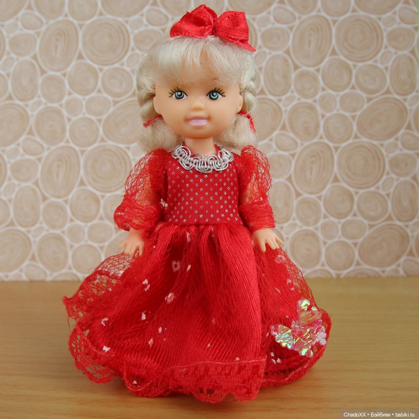 В таком платье у меня куколка от Дефа Люси, похожая молдом на Полинку. Т.е. как ваша, только строго наоборот