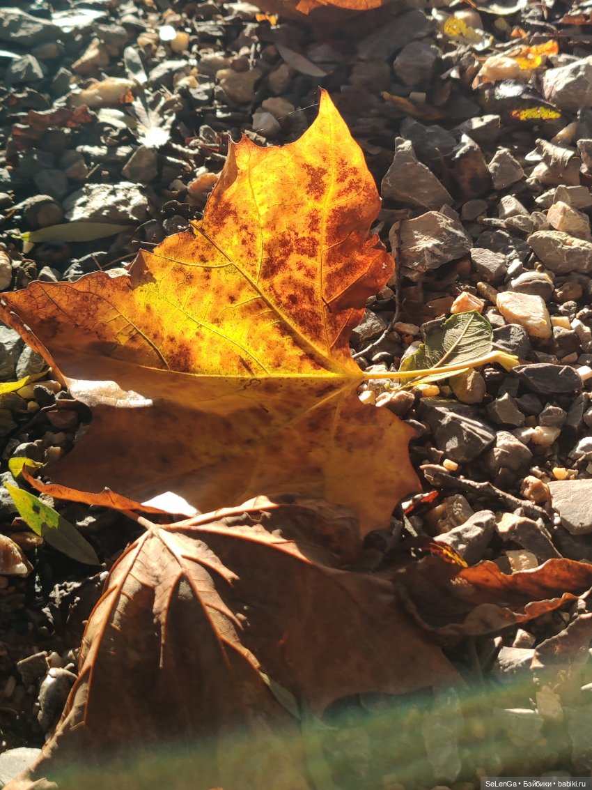 Вот, например, бывает арома-терапия. Или песочная терапия (игра в песочнице взрослым). А тут — два в одном: терапия желтым цветом и шуршанием))) У меня сейчас время наблюдений и привыкания к другой природе, так вот — тут есть, конечно, желтые и оранжевые листья, но они в таком виде не падают. А когда падают — то они почти уже сухие. И можно ходить шуршать — но совершенно сухими листочками)))
