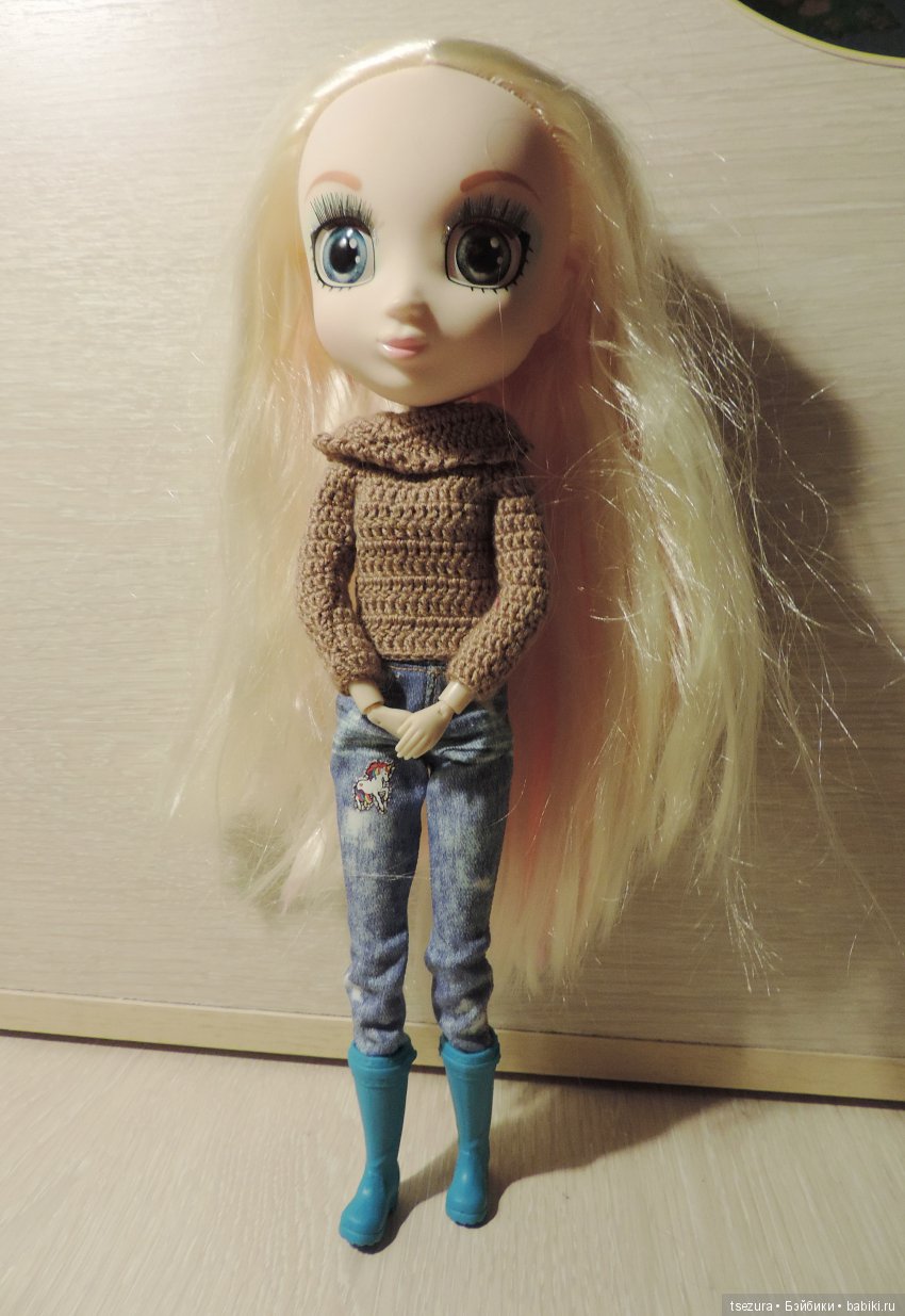 P.S. Про аутфит: голубой цвет куклу не окрасил, что радует. Нитки кое-где торчат, пайетки сыплются. B вообще, сначала из платья посыпалось такое количество обрезков ткани и тканево-пайеточной крошки, что я подумала, что с платьем придётся попрощаться- его не спасти. Ничего подобного, всё абсолютно целое. Если где-то пайетки и отвалились, то это незаметно. Липучка только грубая, цепляет ткань платья, оставляет затяжки, нужно быть начеку.