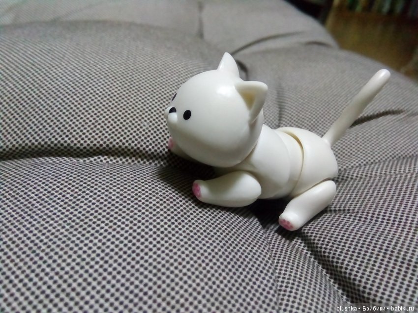 Маленький котенок Японской фирмы Bandai. Котят было девять, дочь выбрала трехцветного. Получив посылочку и посмотрев на это чудо, мы с дочкой решили, что это будет кошка и назовем мы ее, Пятнышко) Котенок приехал со своей рыбкой, которая примагничивается к мордочке.