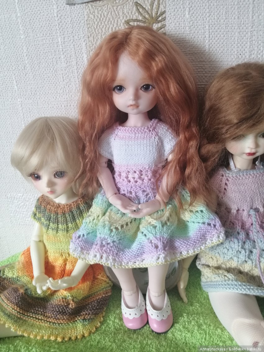 В ней очень красивые вязаные вещи от Татьяны Сорокиной (большое ей спасибо за них). Они конечно были связаны на паолку, но все мои куколки захотели примерить их так что покажемся.Сорри за темные фото, очень хотелось показаться.