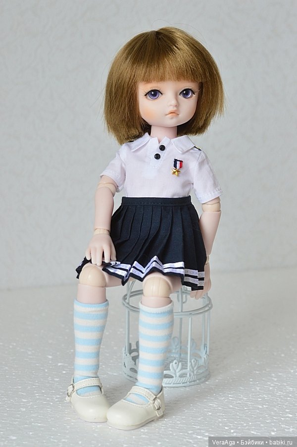 Качественный аутфит -блузка, юбка, трусики, гольфы и туфельки. Хорошо прошито и из хорошего материала, нитки не торчат, кривых швов нету, швы обмётаны. Запахов постороннних нет.