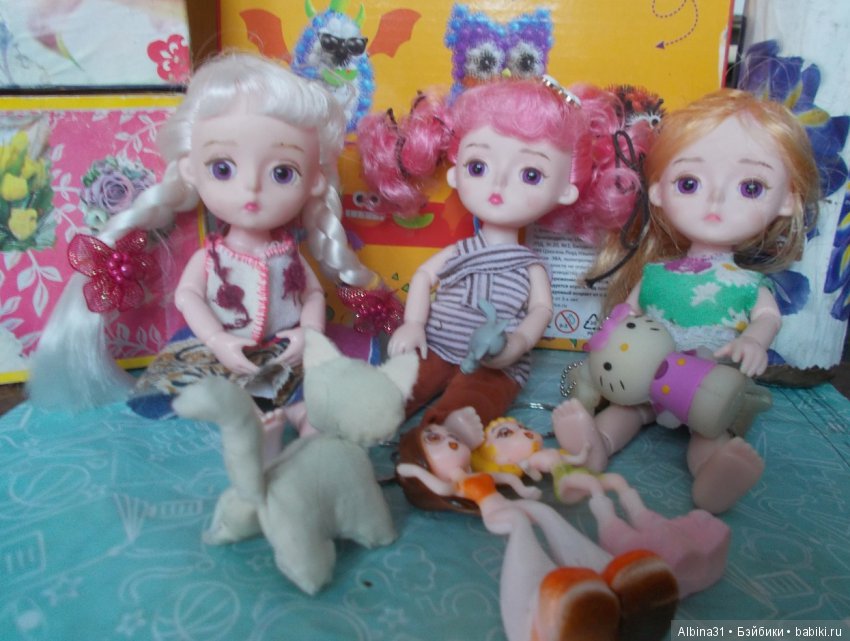 Не так давно ко мне приехала ещё стайка такой мелочи. Двоих взяла приятельница, двоих я оставила себе, двое сейчас обитают в шопике и ждут новых кукломам или куклопап Вместе с кукляхами я прикупила и глазки разных цветов, и теперь у меня вся компания с нужным цветом. Родные сиреневые только Маське оставила, ей они идут.