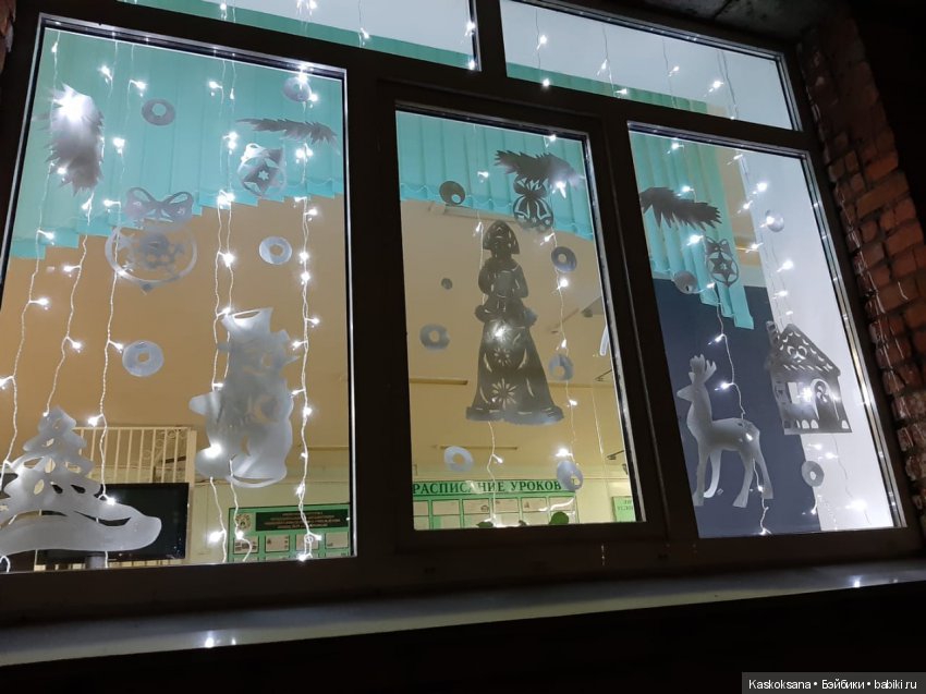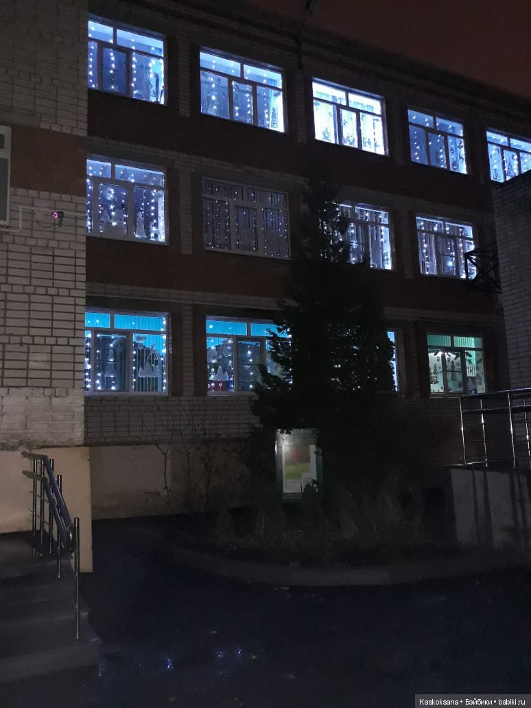 Снега нет, но мы так клево лицей украсили, с фотозонами и иллюминацией