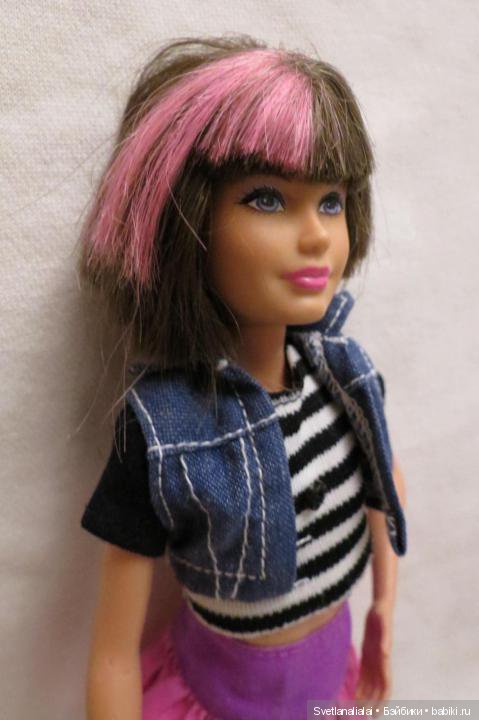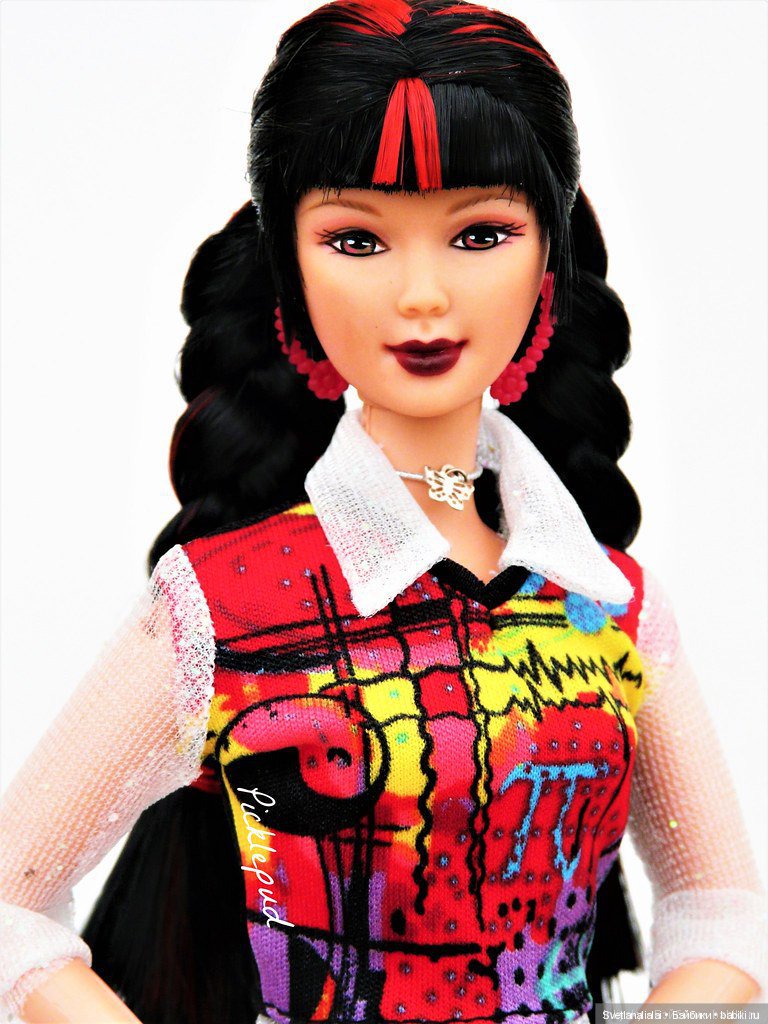 Посмотрите ему девушку из мира барби- подростков (не знаю как выразиться, те, что поменьше традиционных Барби) можно попробовать азиатку с яркими прядями в волосах или блондинку конфетную, тогда будут смотреться.