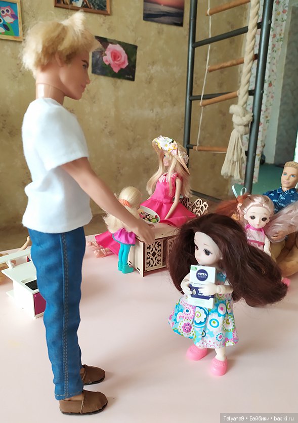 Здесь пока только начало на фото, она регулярно делает там перестановки. И диванчики я специально из губок сшила. Потом сфотографирую, как выглядит комнатка сейчас.