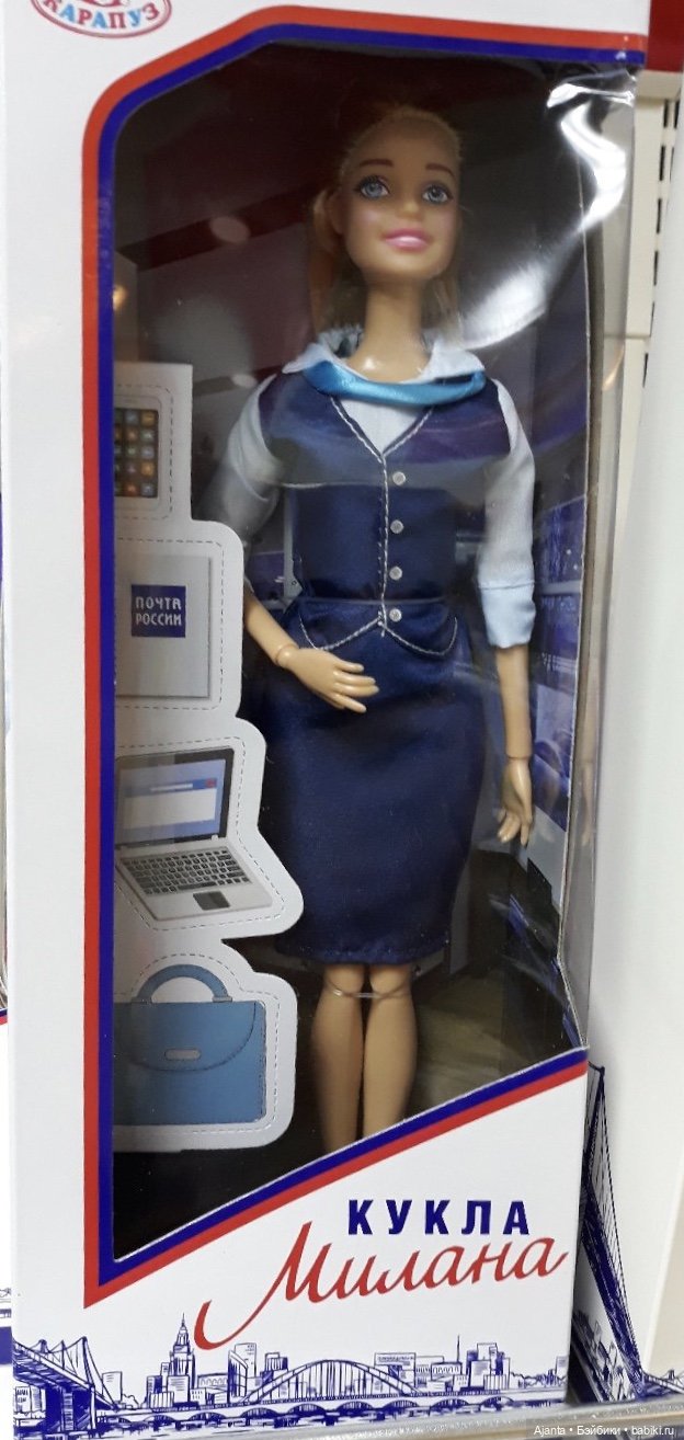 Но и это еще не все! Мне нужно было на почту, как раз прибыла новая партия канекалона и мне хотелось ее поскорее получить. У нас во всех отделениях стоят фирменные почтороссиевские куклы типа барби. Я их углядела некоторое время назад. Тело шарнирное, одежда выглядит приличной, в коробке много антуража. Кажется их 4 варианта.