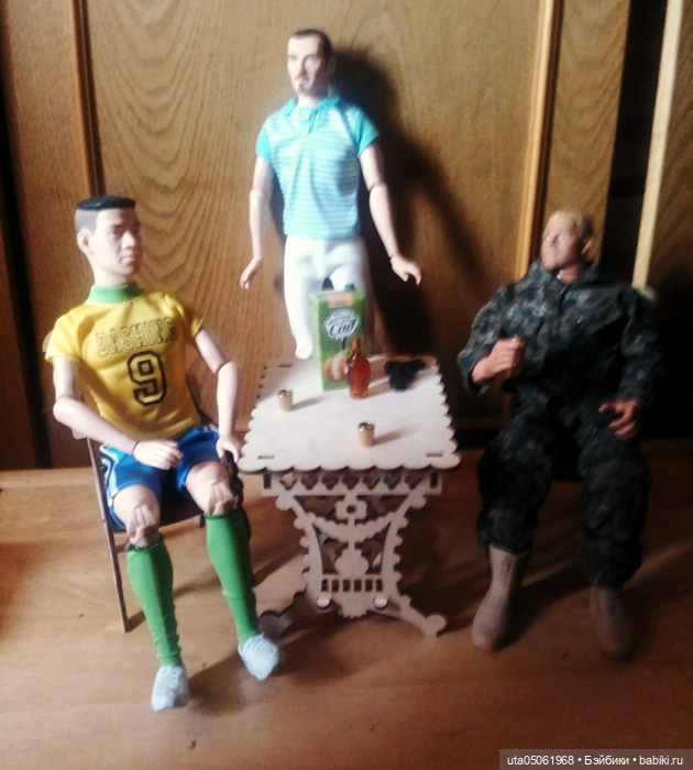 Следующий, второй слева это переделанный мною Артур из фикспрайса. Он повыше Дефа, более пропорциональный и ладненький. Шарниров у него больше, работают они лучше, чем у Дефы. Да, пластик тела тонковат, но Артуры мне однозначно больше нравятся, чем парни от Дефа. У Деф мне нравится только один этот прекрасный молд с совершенно шкодным лицом вполне живого человека. Мне интересно будет переделать его по-своему)