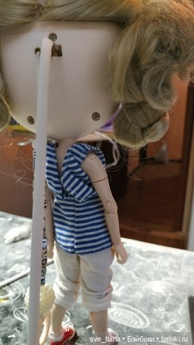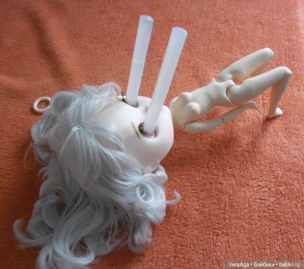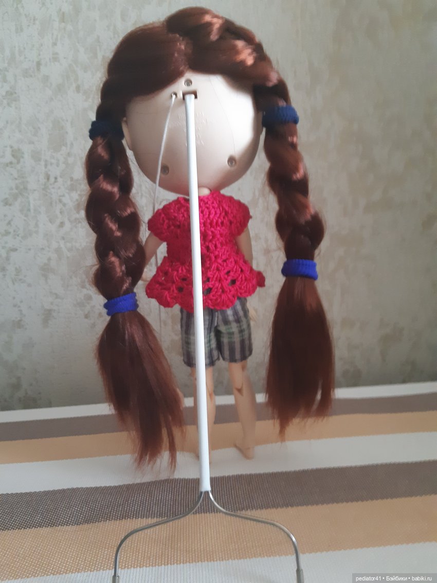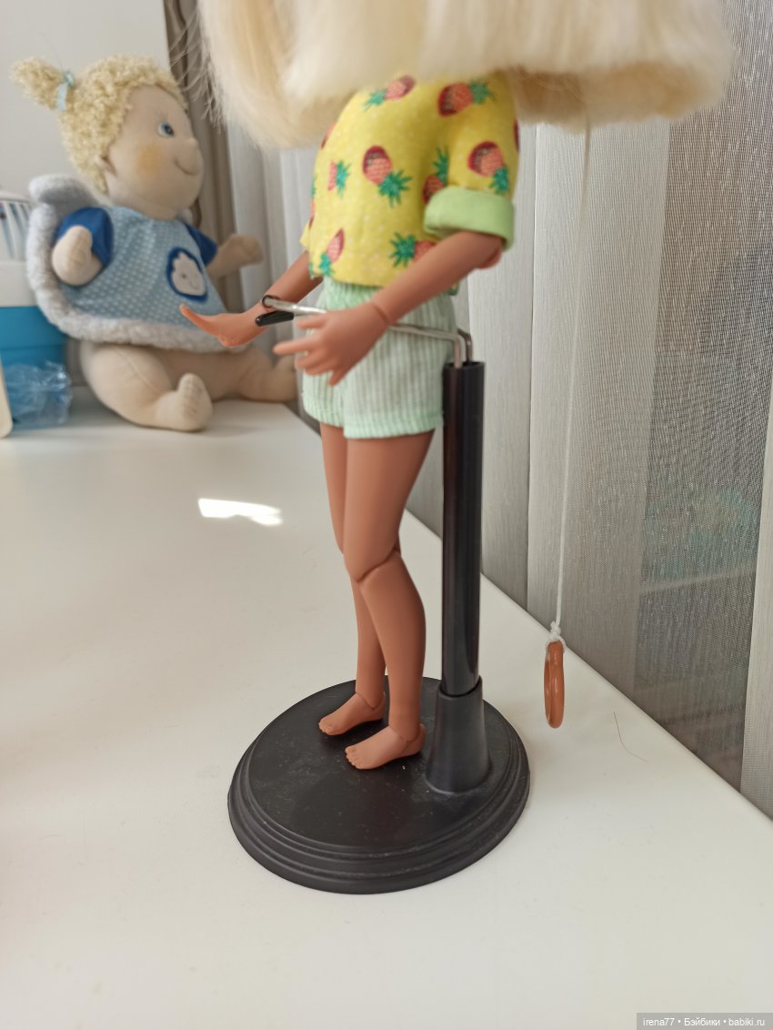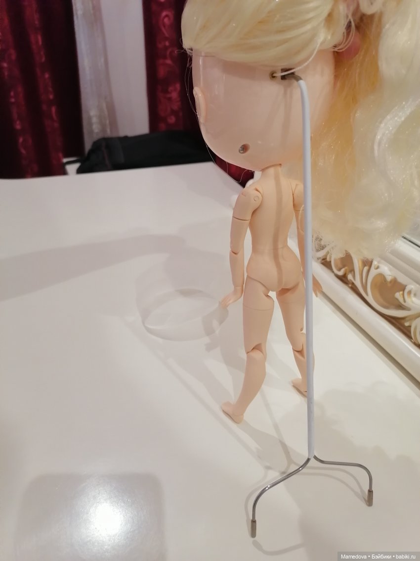Есть ещё подставочки для фото сессий, чтобы смотрелось естественно, я брала свою на Алиэкспресс за 400р. Суть в том, чтобы вставить один конец в дырочки на голове, а другим концом упереться в пол))