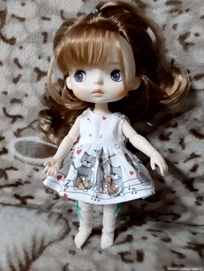 Как-то зашла в 5ку за хлебушком и вот кого купила за 299 руб., мы же неугомонные — нам надА)) На Алике их тучи разных, а тут бац — рядом и ждать-надеяться не нужно)) Коробочка красивая — даже не стыдно подарить. Платьице непонятно из чего (где отшивали-то? В мировом центре текстильной промышленности) — тактильно не понятный полимерный материал, но за неимением лучшего и это временно пойдет, пока шОнель отшивает. Тапки отдельная песня — пластиковые, знаете только куда такие подходят..? Волосы конечно не фонтан, залысины, собраны под прическу. Их (волосы) я укоротила, профилировала (навык не утрачен)), так как концы были как огрызки, разной длины, ну и для устойчивости, с более короткими куколка стала меньше заваливаться назад. А вот глаза — это океан (только не знаю то ли Атлантический, то ли Тихий) и мейк, такой весь класснючий, прям почти БЖДшный, ох уж эти ресницы, а брови — мечта. В общем девчинка меня радует. Придираюсь — чуть бы надо телу оттенка более приближённого к коже, или хотя бы желтизны, уж больно она мертвецки бледна))