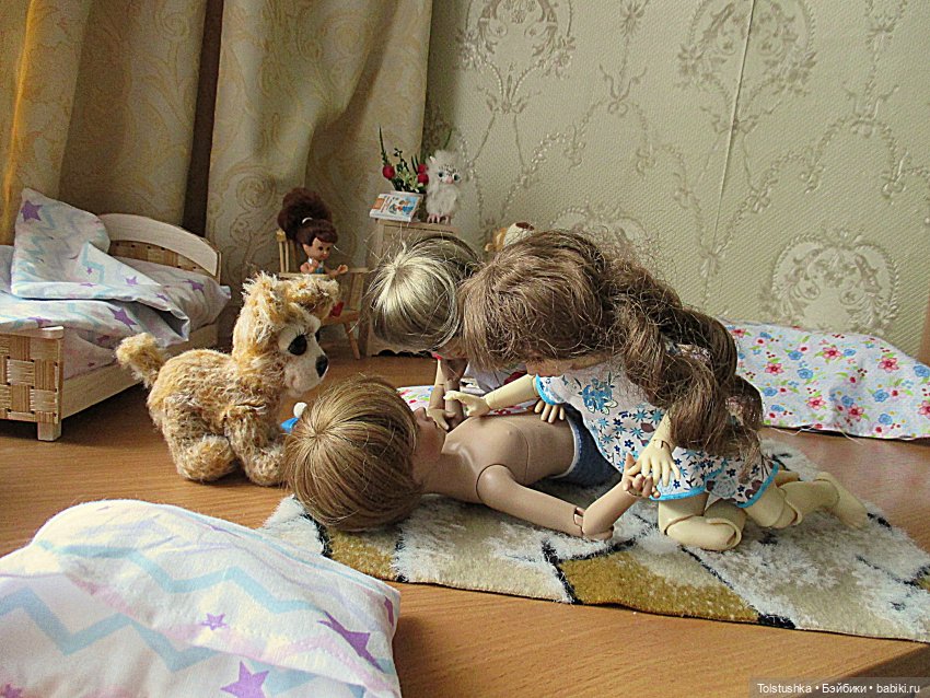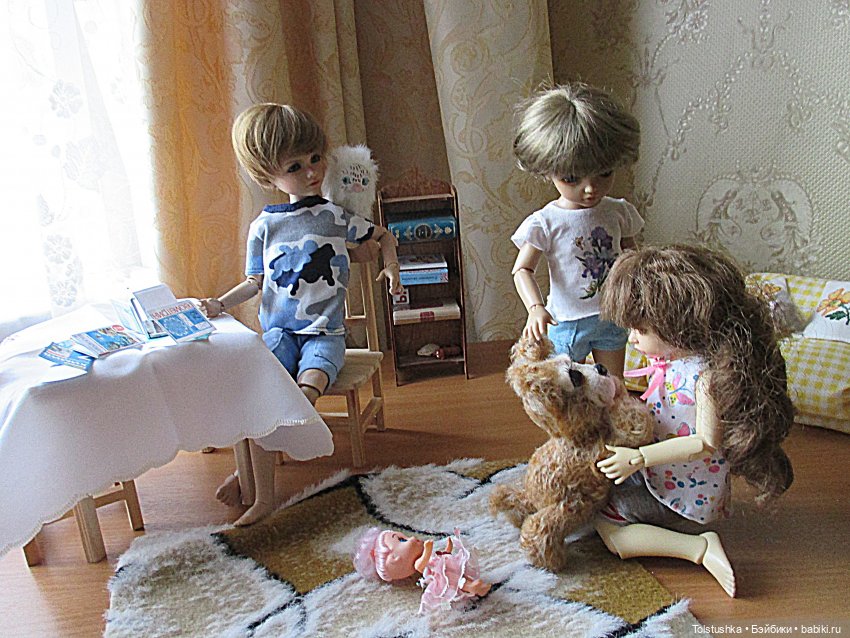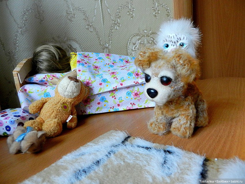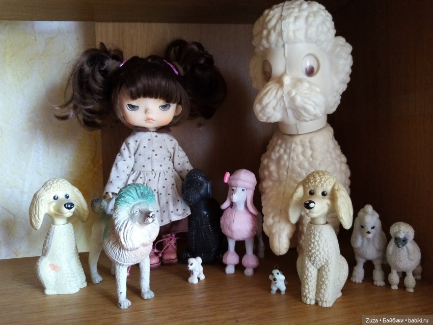 Тогда муж подарил мне игрушечного пуделя (наша Дэзи тоже была черного цвета). Куклы мои очень дружны с пудельком.