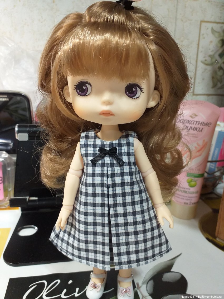 Такого формата малышек у меня еще не было. Она невероятно милая, тискательная, приятная тактильно… шикарные волосики, чудесно сложена… сейчас осталось наряжать и радоваться)))