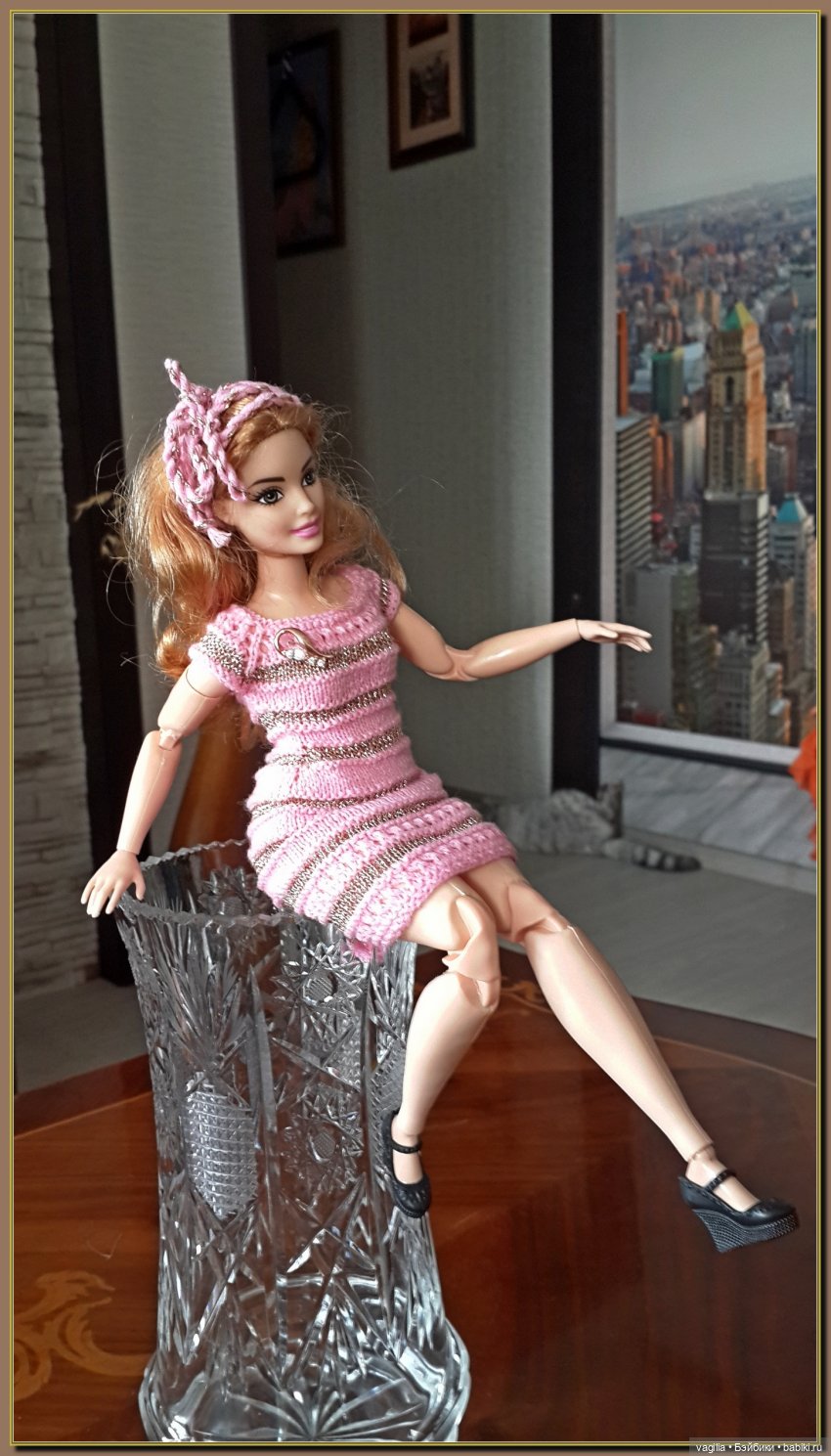Начну я, пожалуй, с того, что довольно давно приглянулся мне МК Оксаны Лифенко под названием «Вокруг света». Долго собиралась я с силами освоить этот МК и вот, наконец, собралась. Сразу скажу, что из комплекта связала только брюки и топ, а жакет и бейсболку пересчитать на барби пышку пока не сподобилась. Поэтому покажется моя барышня в том, что на данный момент в её гардеробе имеется.