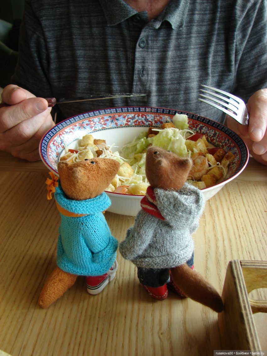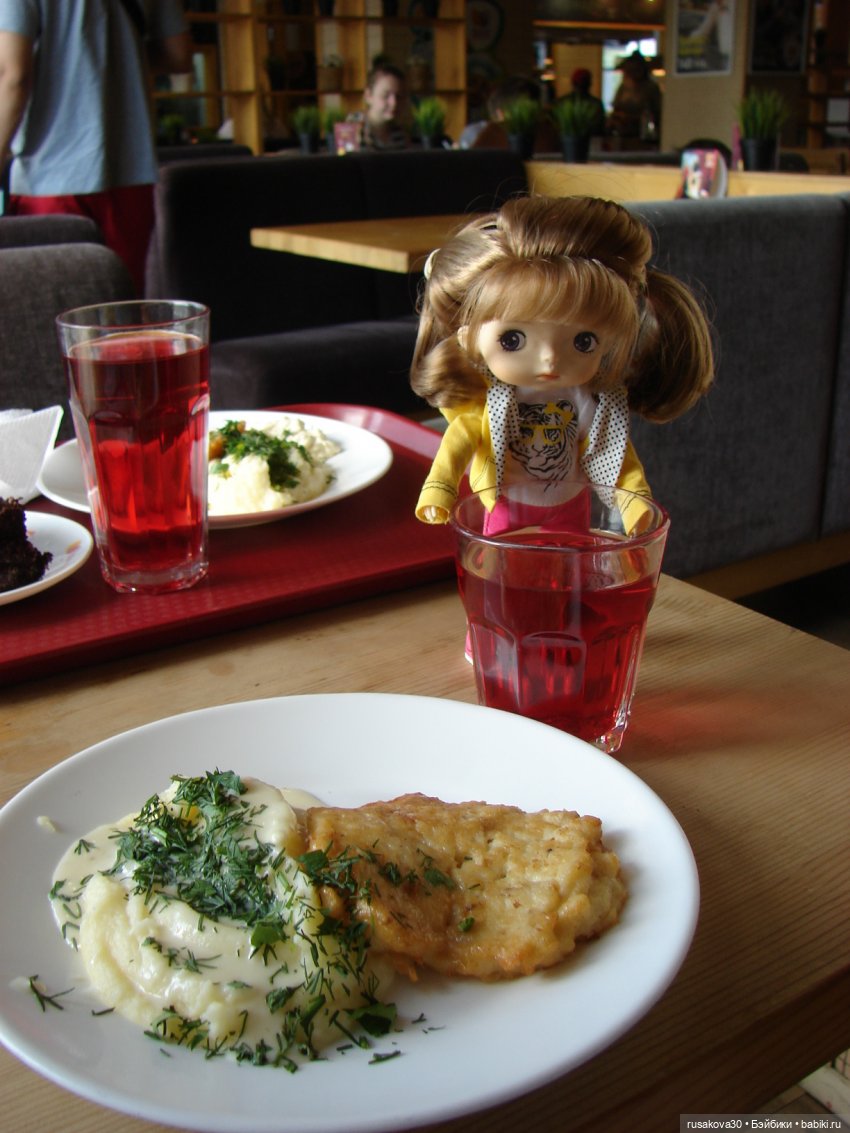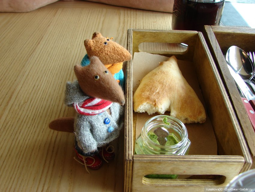А у меня, в моей маленькой дамской сумочке живёт лягушонок, он мой компаньон везде, в том числе и в частых поездках в Москву. Мы с ним всегда кушаем вместе)), он первый снимает пробы, скачет по еде)).