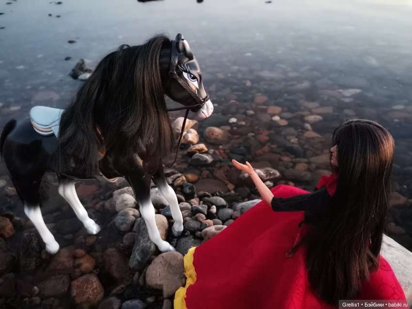 Я вот так и не сфотала своих лошадей в поле. Но есть конь и река)