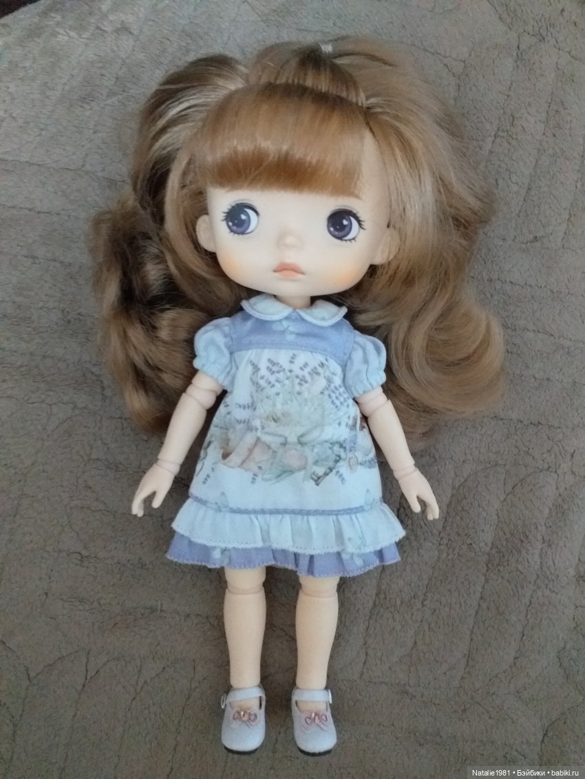У меня живет куколка прошлогоднего выпуска, еще из «первой волны», когда у куколок была копна волос и волосы были сразу мягкие и не жирные прямо из коробки. Где-то с августа или сентября и у этих куколок, судя по отзывам, стало меньше волос и по приезду приходилось их мыть.