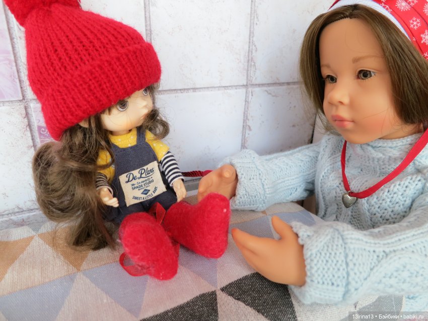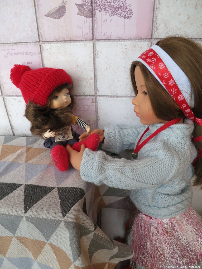 Валенки валенками, они необходимы, конечно, для морозов и для любых ножек! Но Эмильке хотелось ещё сделать что-то очень приятное, подарить любимой куколке ещё больше тепла и любви.