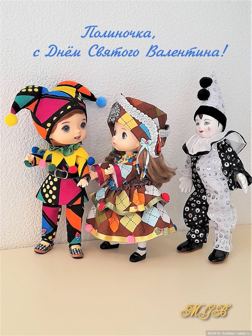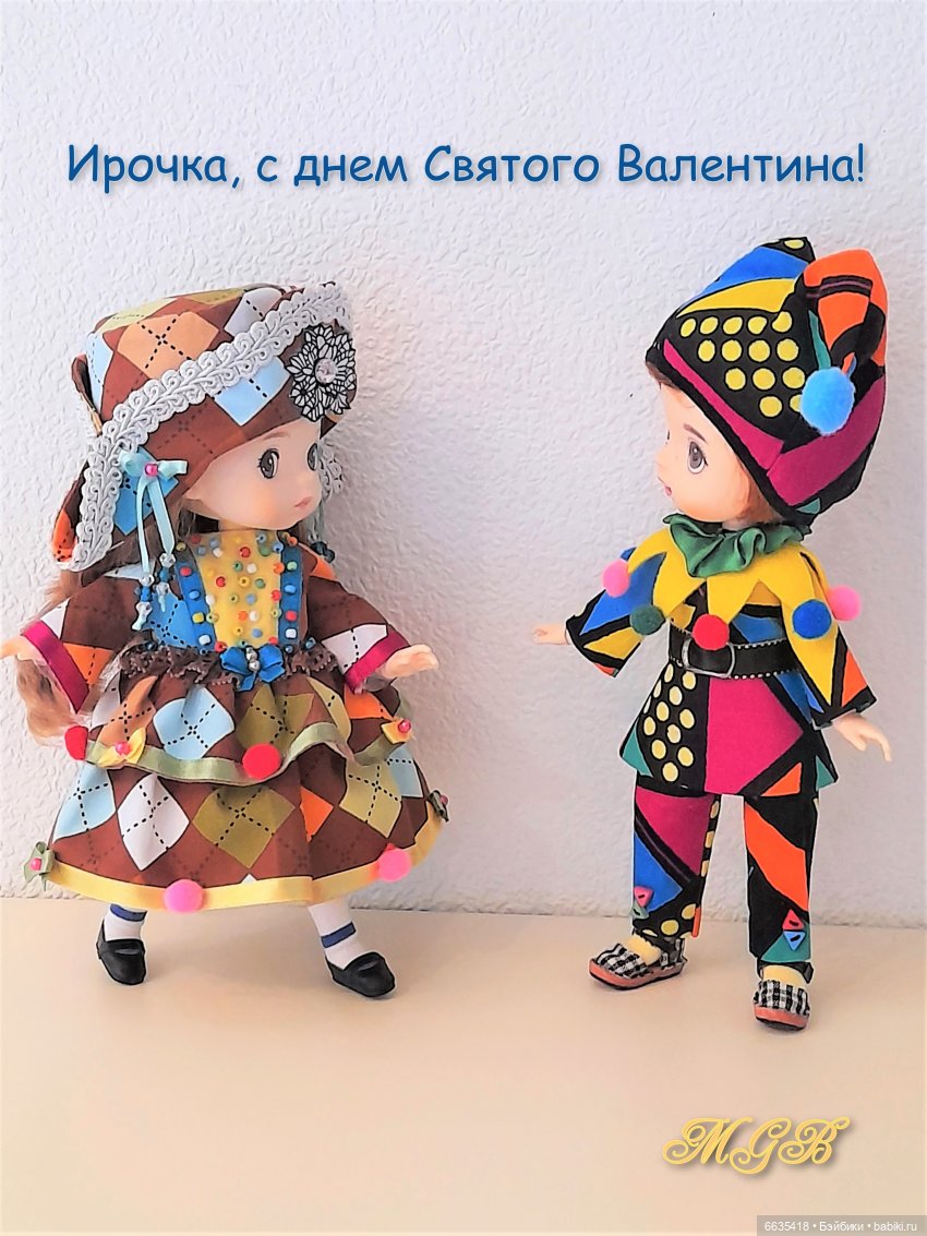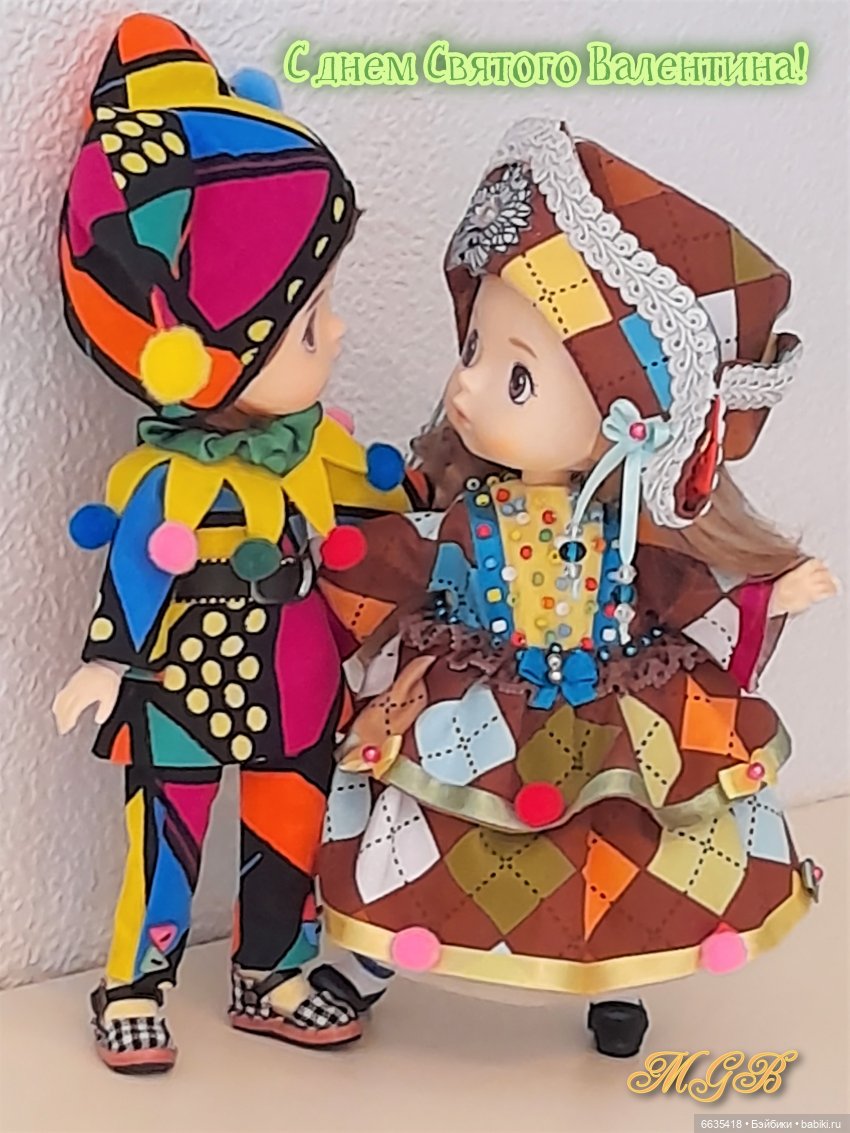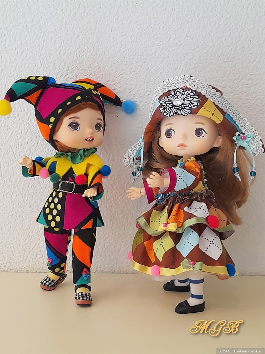 Кстати, Пьеро «поселился» у меня давно, но лишь совсем недавно я создала образы Арлекина и Коломбины. Мне захотелось создать яркие и жизнерадостные костюмы.