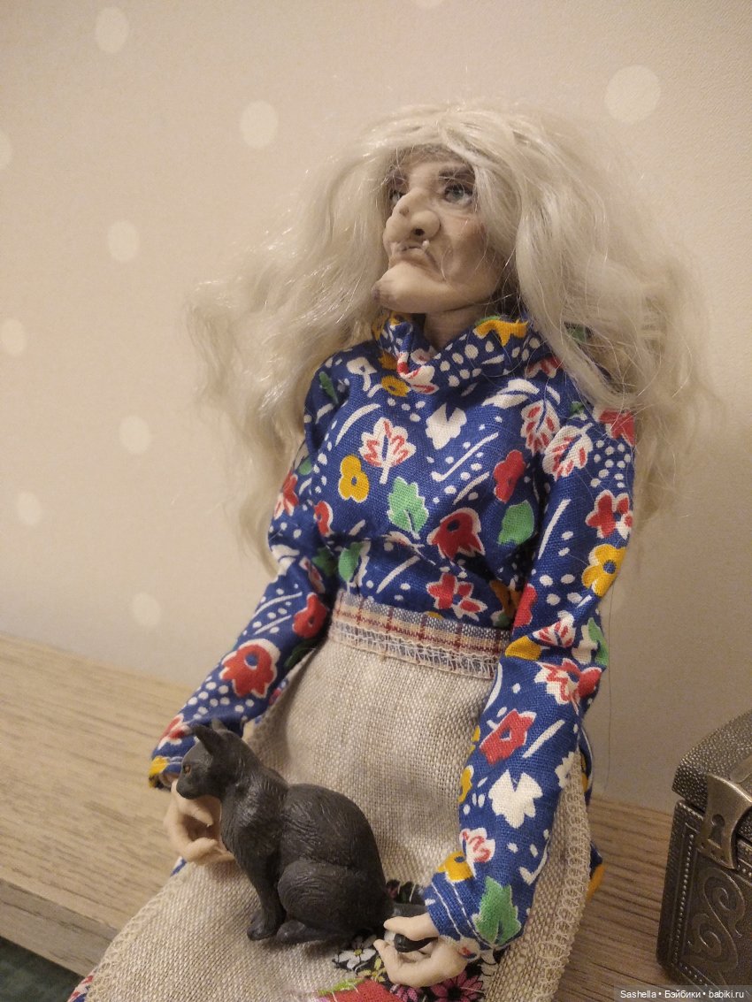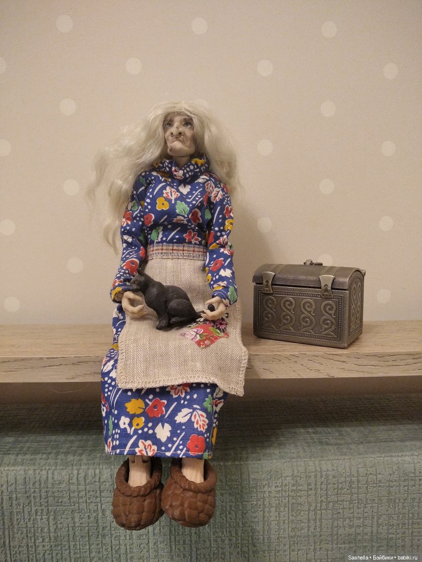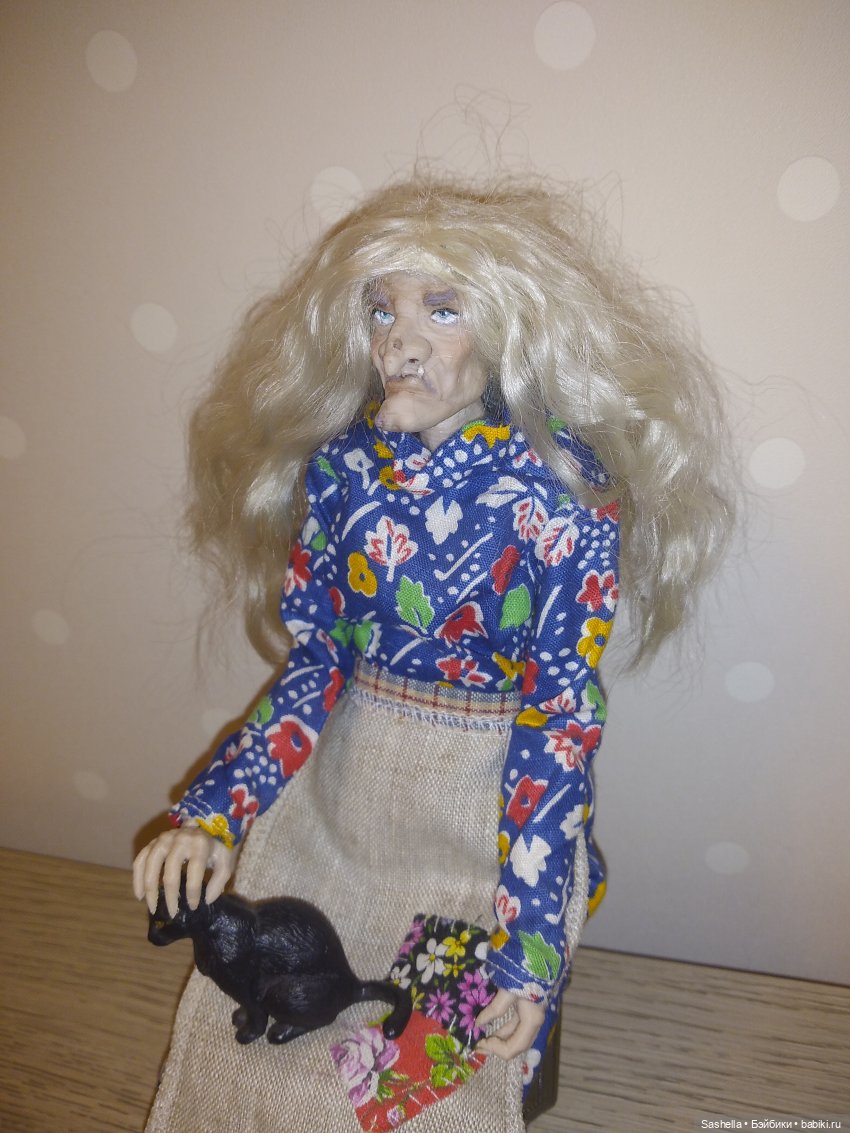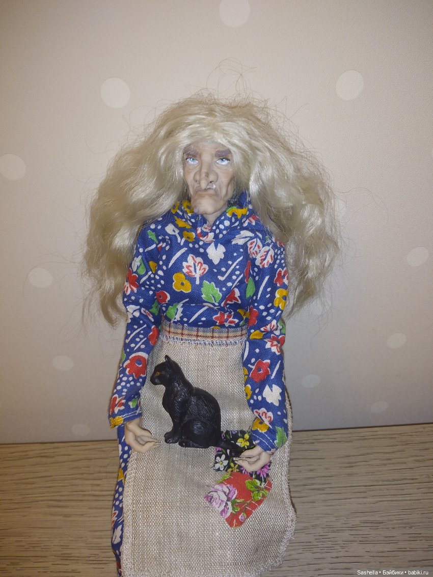 Я немного переклеила её парик, чтобы сидел по форме головы, а потом отправила куклу на мейк и блаш к мастеру Firexia (https://vk.com/firexia_ooak). Пока Ягу красили, я занялась деталями образа — бабусе был необходим сказочный реквизит.