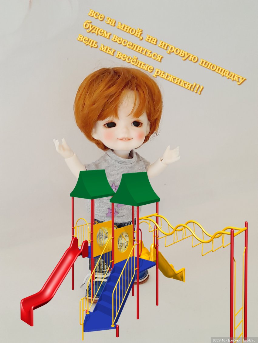 У одной из девочек и комбезик рыжий. И не кажется, что рыжего цвета много — очень гармонично рыжий+рыжий!