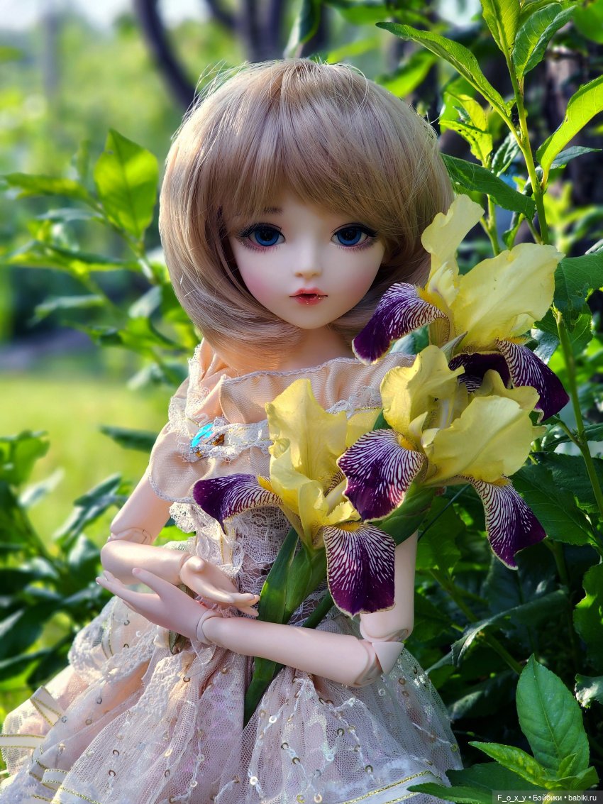 Куколка, которую покажу, моя вторая по счету шарнирная малышка. Назвала я её Долорес или просто Долли. Ей можно менять парики и при желании глазки. Но я сразу же, при покупке, попросила продавца поставить такие глазки, которые мне хотелось. Родной парик мне не очень понравился, и я почти сразу его поменяла. А вот наряд у нее был просто великолепный! Нежное, воздушное платьице и много красивых аксессуаров. Фотографии, которыми поделюсь, из архива 2020-го, когда я только купила Долорес, в её изначальном образе. Так как было лето, то куколка, похожая на фею или принцессу, позировала мне с большой садовой лилилией, которая очень подошла к нежно-розовой цветовой гамме её наряда.