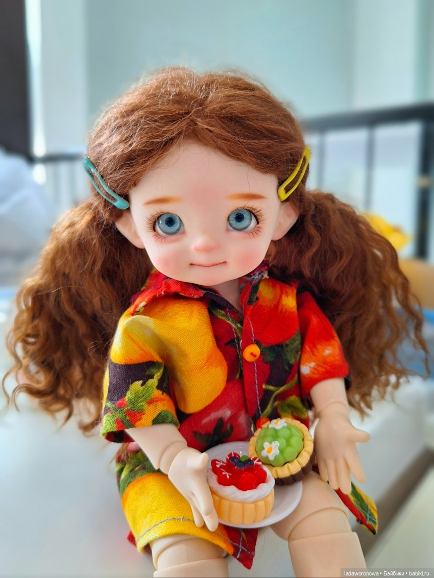 Конструкция головы у первых малышек была, как у бжд -крышечка на магнитах, глазки на пластилине, материал очень похож на полиуретан. Тело обитсу11. Со временем у крошки появилось новое личико, теперь она выглядит вот так: