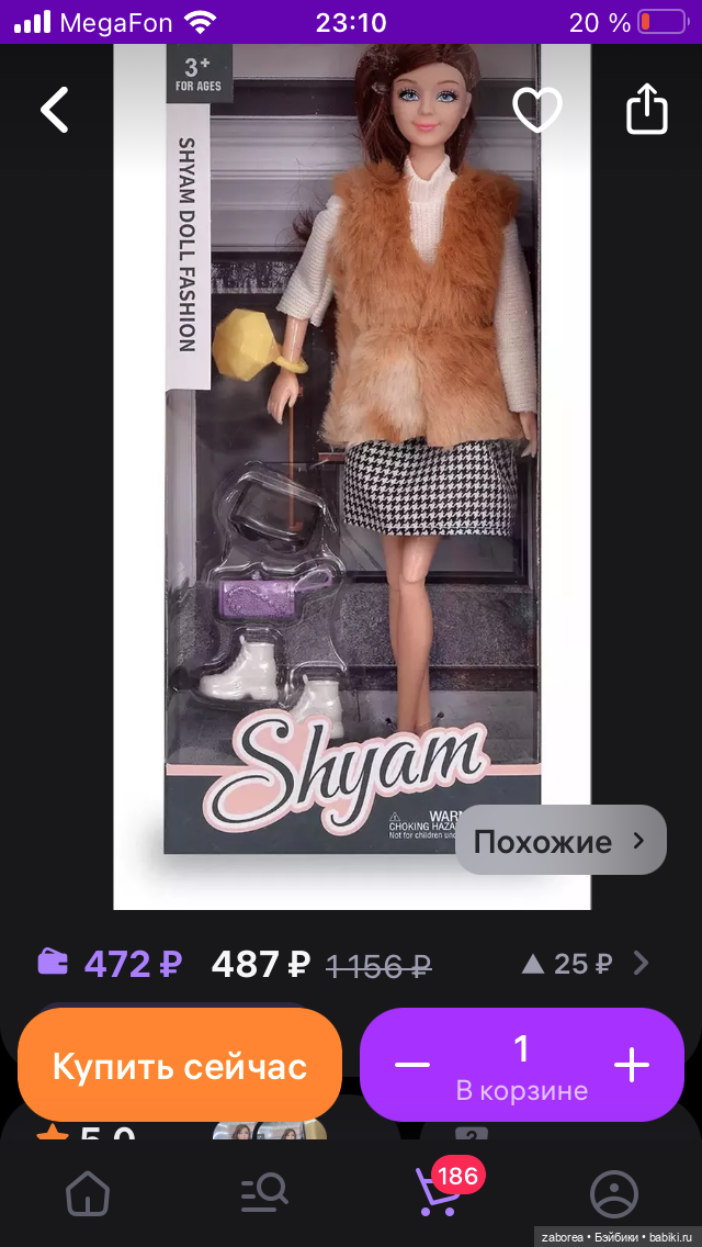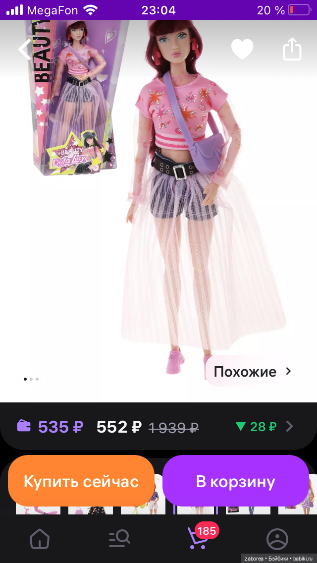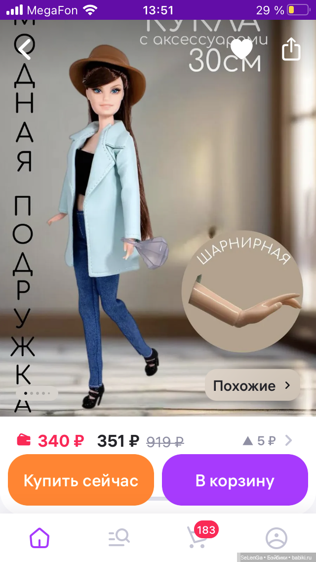 Недавно была в местном магазине типа Смешных цен и приобрела там девочку формата Барби за улетные 169 рублей. Такая очаровательная! В ближайшее время ее поснимаю и покажу)))