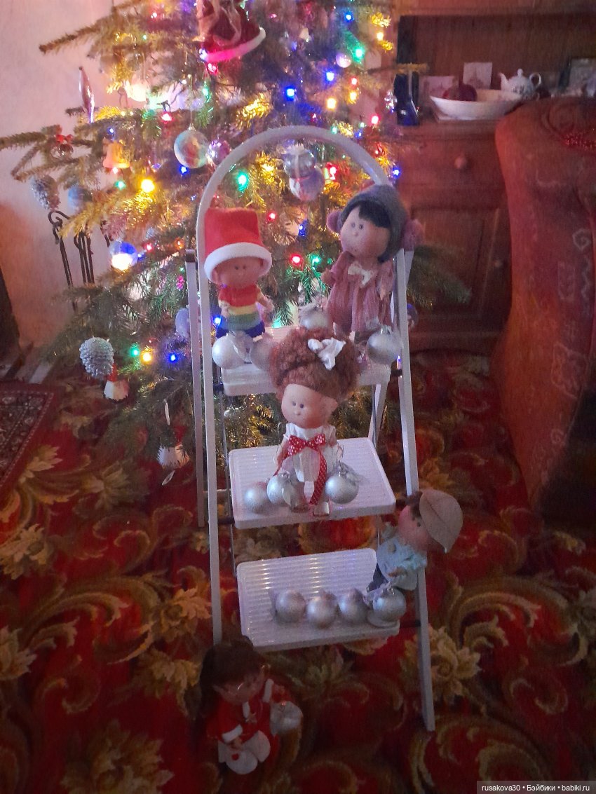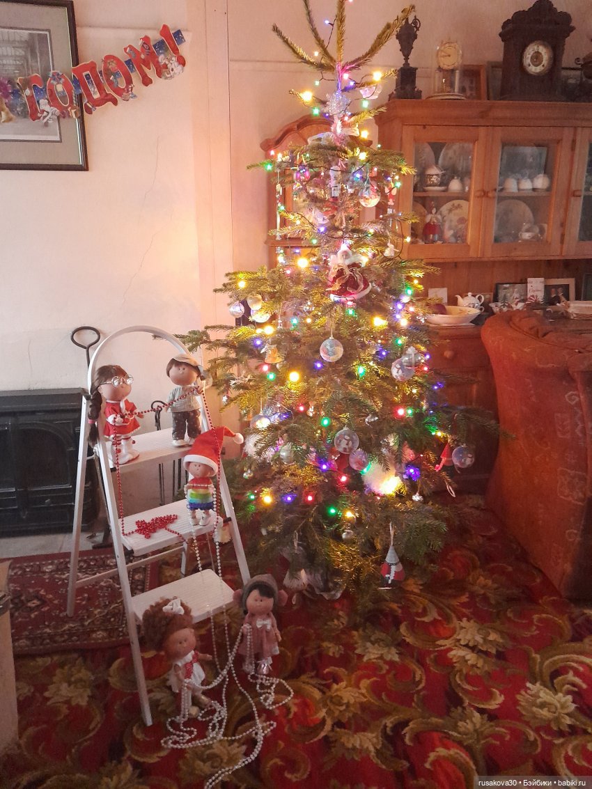 Этот день мы с большинством моих кукол посвятили новогодней ёлочке. Неторопливо мы украшали её и не заметили, как за окном уже стемнело.