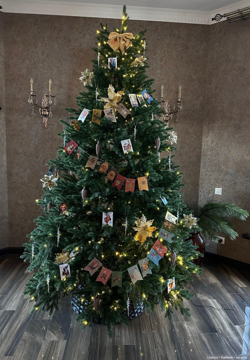 К сожалению, на одной гирлянде загорелись не все лампочки. Тут же заказала новую. Придётся украшать ёлочку с теми гирляндами, которые есть.