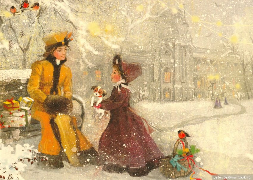 (Такую милую рождественскую открытку Екатерины Бабок мне прислала Лена Lilitana в подарок вместе с купленной у неё куколкой!)