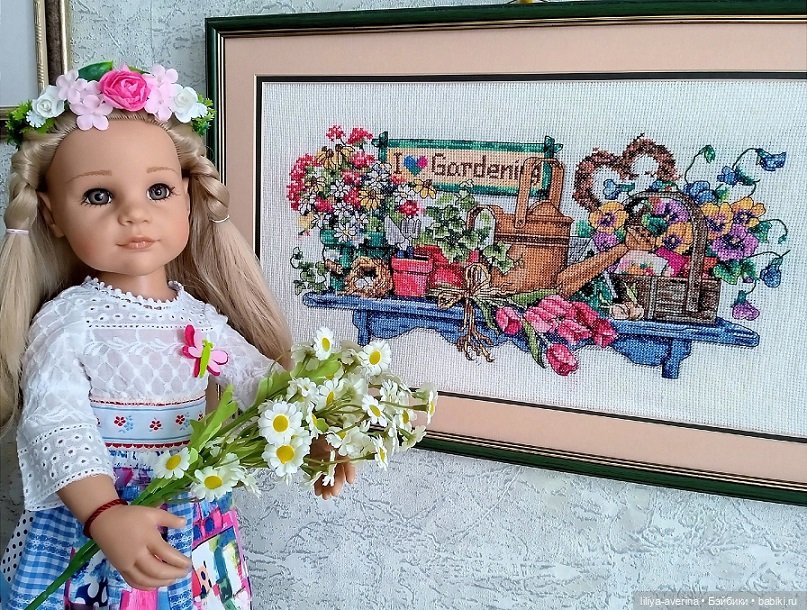 А сегодня утром я увидела готовую картину. Малышка была очень довольна своей работой. Надо как-то ее отблагодарить. 💐 Все девочки любят наряжаться. Пожалуй, сошью ей что-нибудь красивое 👗👒