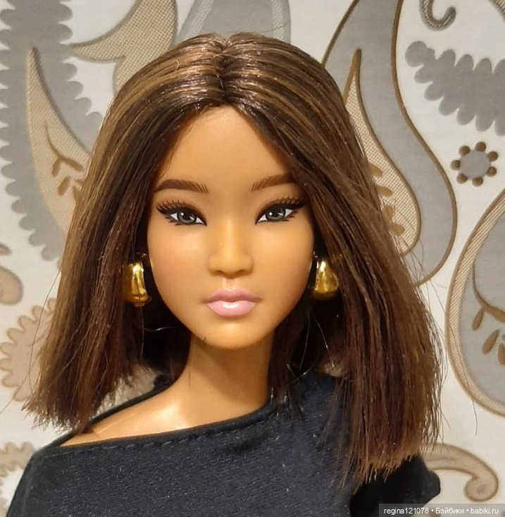В ушах серьги. Крутая кукла! В комплекте подставка и сертификат. Волосы быстро отмылись кипятком, потом шампунем. Жду как высохнут, тогда сделаю фотосессию, покажу. В общем, у меня праздник!
