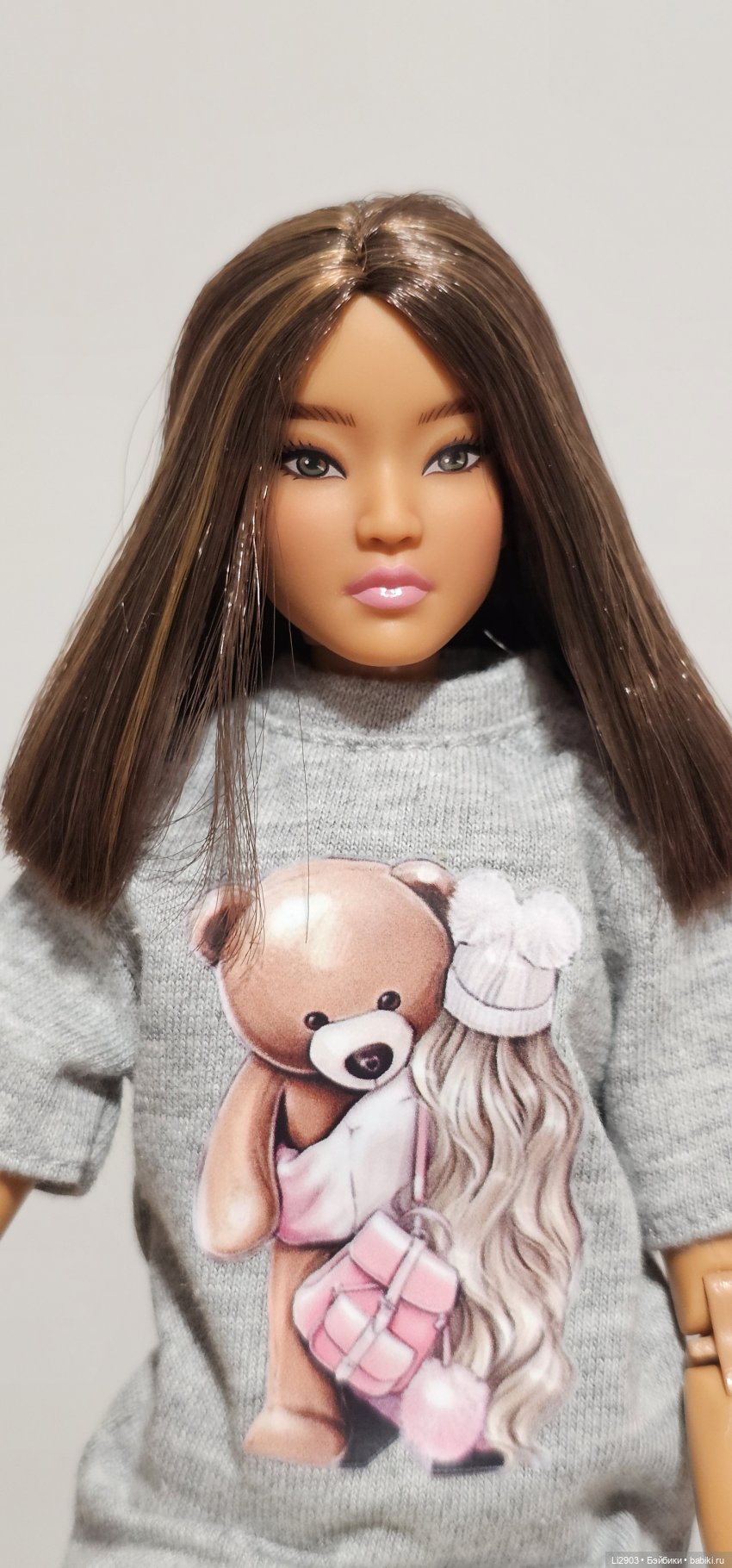 Мне кажется, тело не совсем для нее, голова крупновата. Пришла в коробке, в комплекте сумка, ободок, книги. Одежда как на картинке. Кисти вытаскиваются, что очень классно! Но на этом плюсы кончаются. Ступни больше мателовских Барби, туфли от нее успешно подошли моей экшенке.