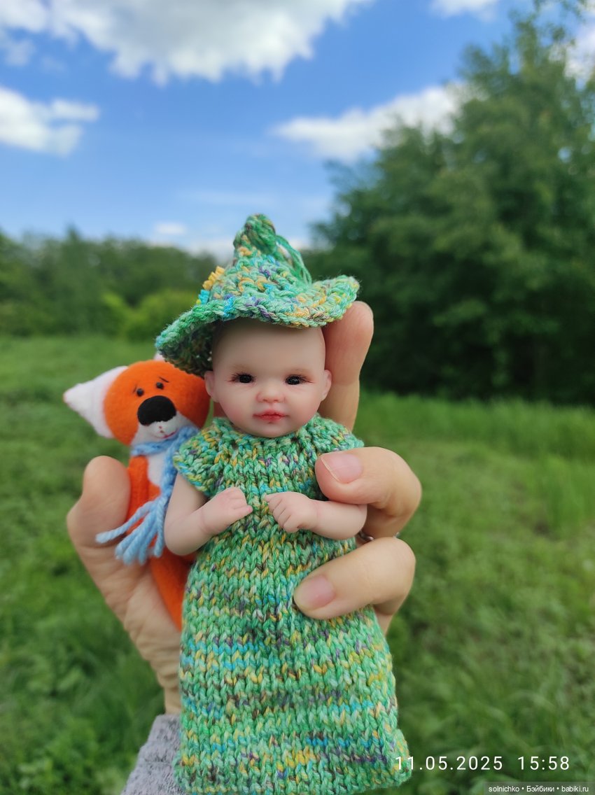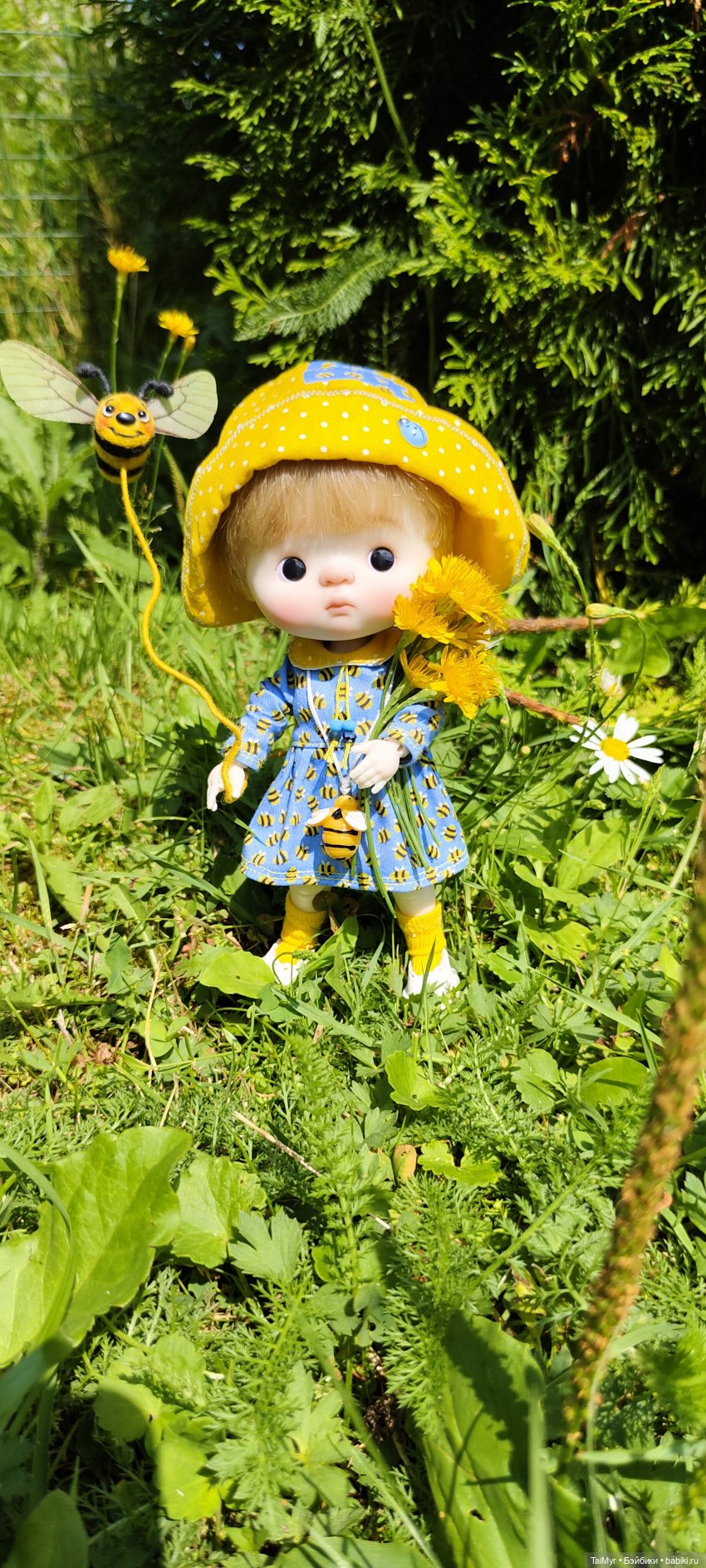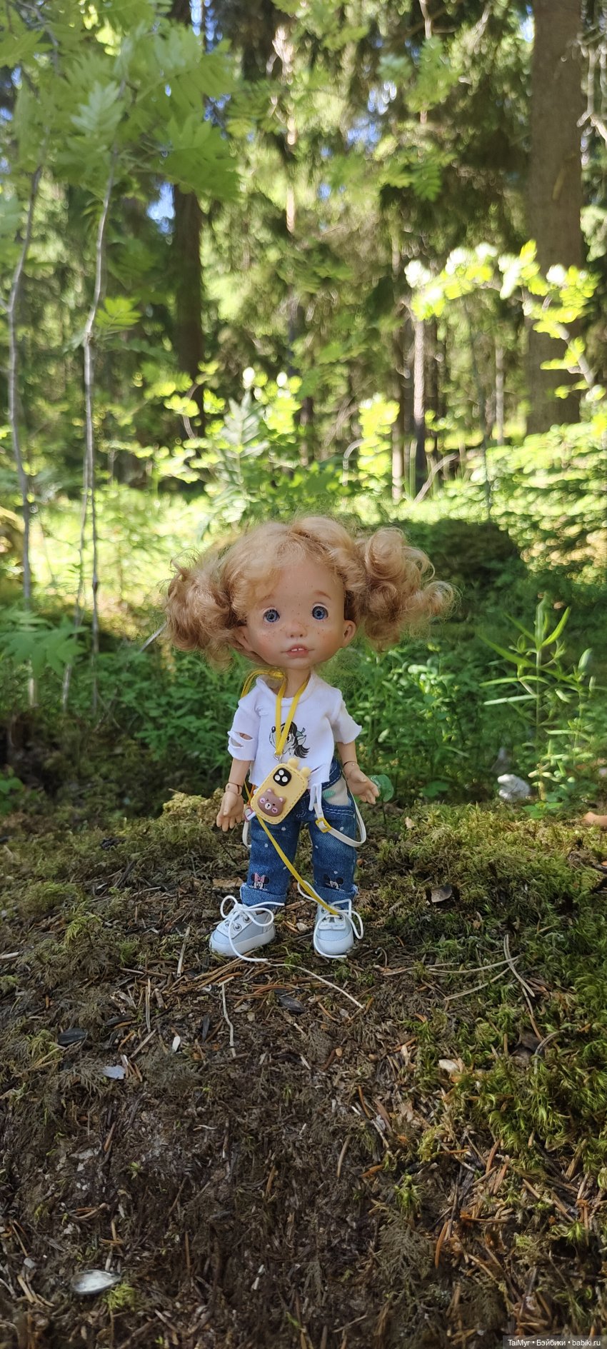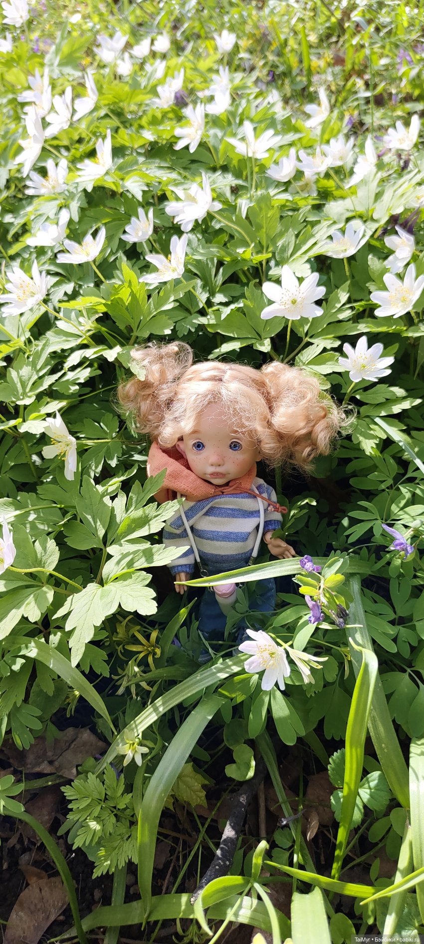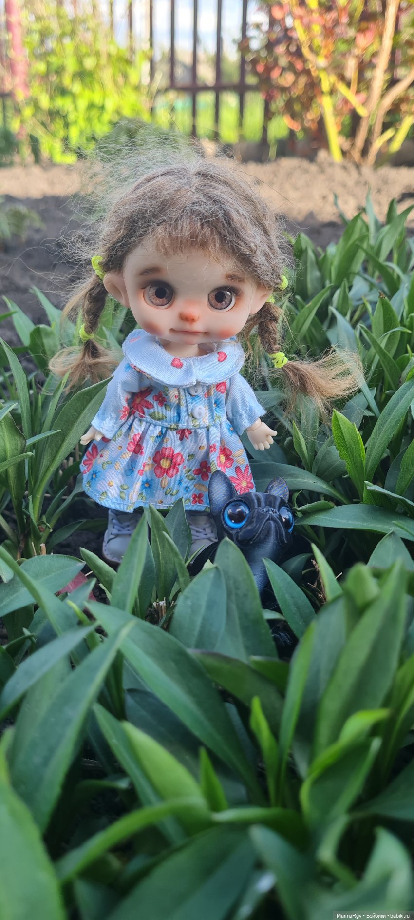 Очень здорово малышя смотрится в молоденькой травке. Спасибо за комплименты Ангелинке. Девчуля приехала ко мне 25 марта от Юлии Смоляковой. Мне она показалась самой очаровательной малышкой у этого мастера (ну так, пожалуй, считает каждый приобретатель авторских кукол 😉). Мы с Ангелинкой обретаемся в дневниках. Нужно как-нибудь написать публикацию про свою малышню. Набралось там маленького народца порядочно.