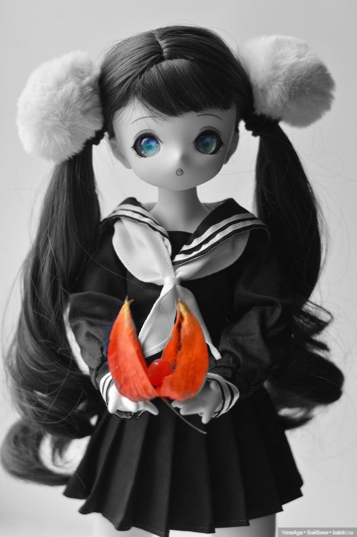 У Клары приятный пластик тела, матовый и бархатистый. Волокно парика довольно приличное, волосы гладкие, не слишком жёсткие. И какая же она милая! Такое забавное, чуть удивлённое выражение лица и красивые большие глаза.