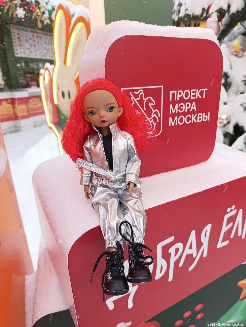 Доброго времени суток!Пока в Москве не было так сильно холодно, как сегодня и шел снегопад, и мы прогулялись с любимой куклой в ее типа, скафандре. Ей тепло, ну и замечательно.