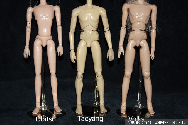 Скинтон тела по сравнению со всеми остальными куклами имеет сероватый оттенок. Obitsu normal, Volks и Барби неко-оттенка выглядят около него совсем розовыми.