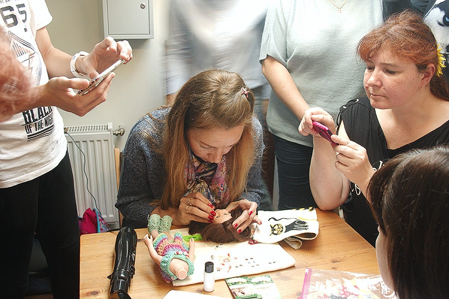 Еще был мастер-класс по замене глаз от Анны Капотовой. Анна поменяла на встрече три раза глаза разным куклам.