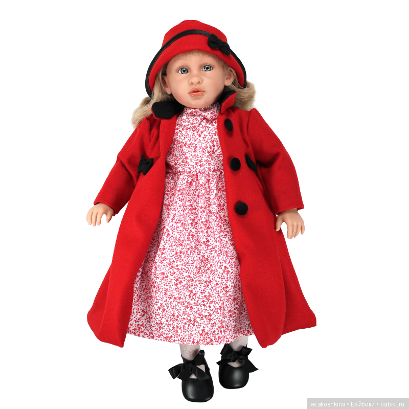 Девочка, несмотря на такой серьёзный и даже строгий вид, очень нежная и даже трогательная.Мне она нравится.И внешне, и её качество — винил очень приятный, прошивка волос густая.У неё мягкое тело, но руки и ноги почти полностью виниловые.Ножки интересные — одна прямая, вторая полусогнута, когда девочка стоит, ножки ей можно скрестить, и получается интересная поза.И пальчики врастопырку, смешные.Кстати, наверное, из-за этого кукла продаётся босиком.