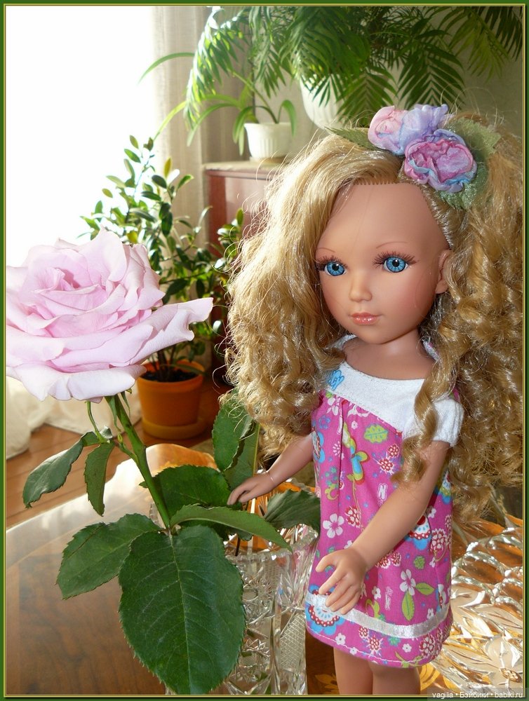 Кукла фигуристая, глазки закрываются. Конечности вращаются вмеру туго. Но вот копна волос перевешивает и голова вращается сама по себе. Это немного подбешивает)
