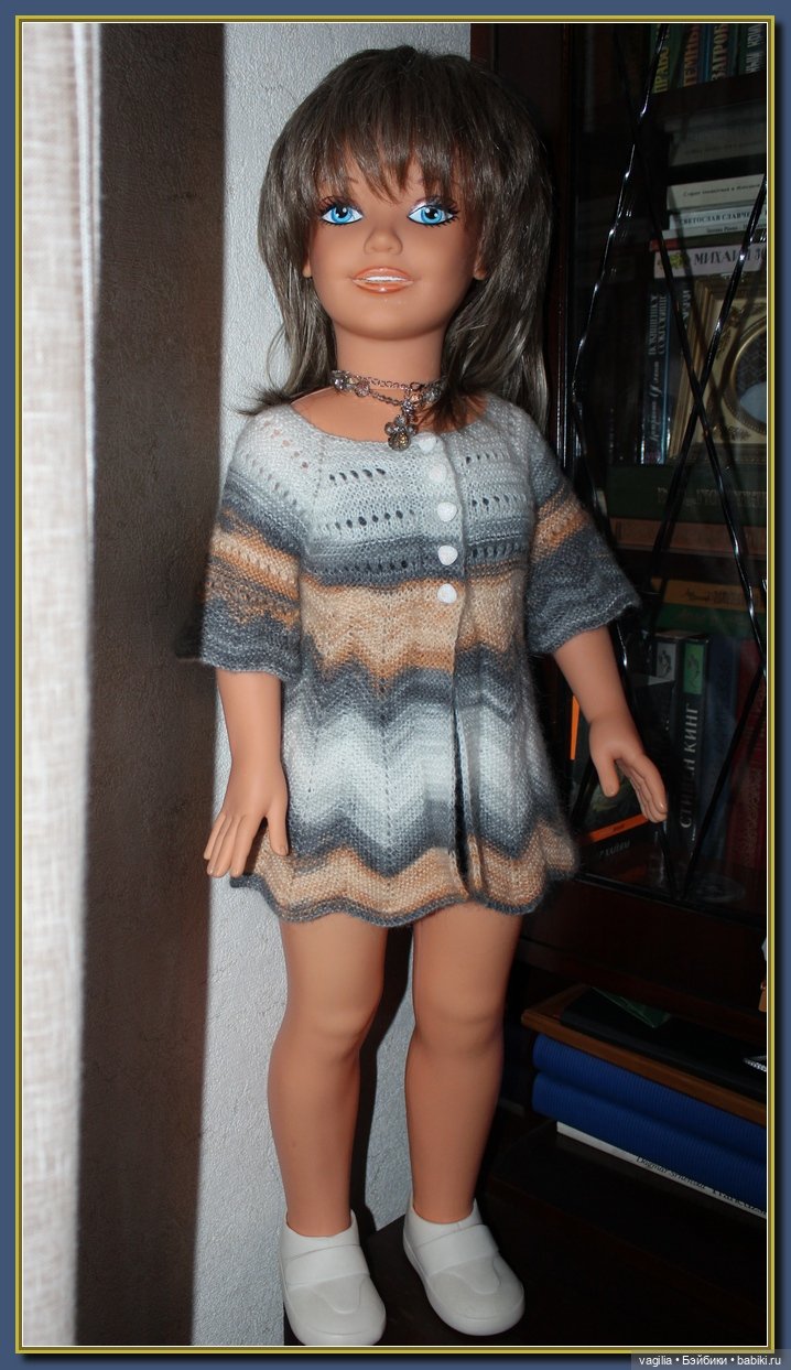 Захотелось мне сегодня показать Вам фото Сандры. Её я купила одной из первых просто потому, что люблю больших кукол. Мне понравился её модный наряд и ладненькая фигурка. Я тогда о куклах не знала вообще ничего, но мне захотелось узнать имя модницы. И, о ужас! Я даже не думала, что на это у меня уйдет почти неделя. Я тогда её нашла. Это оказалась испанская фирма FALKA. Имя Сандра мне тоже понравилось.