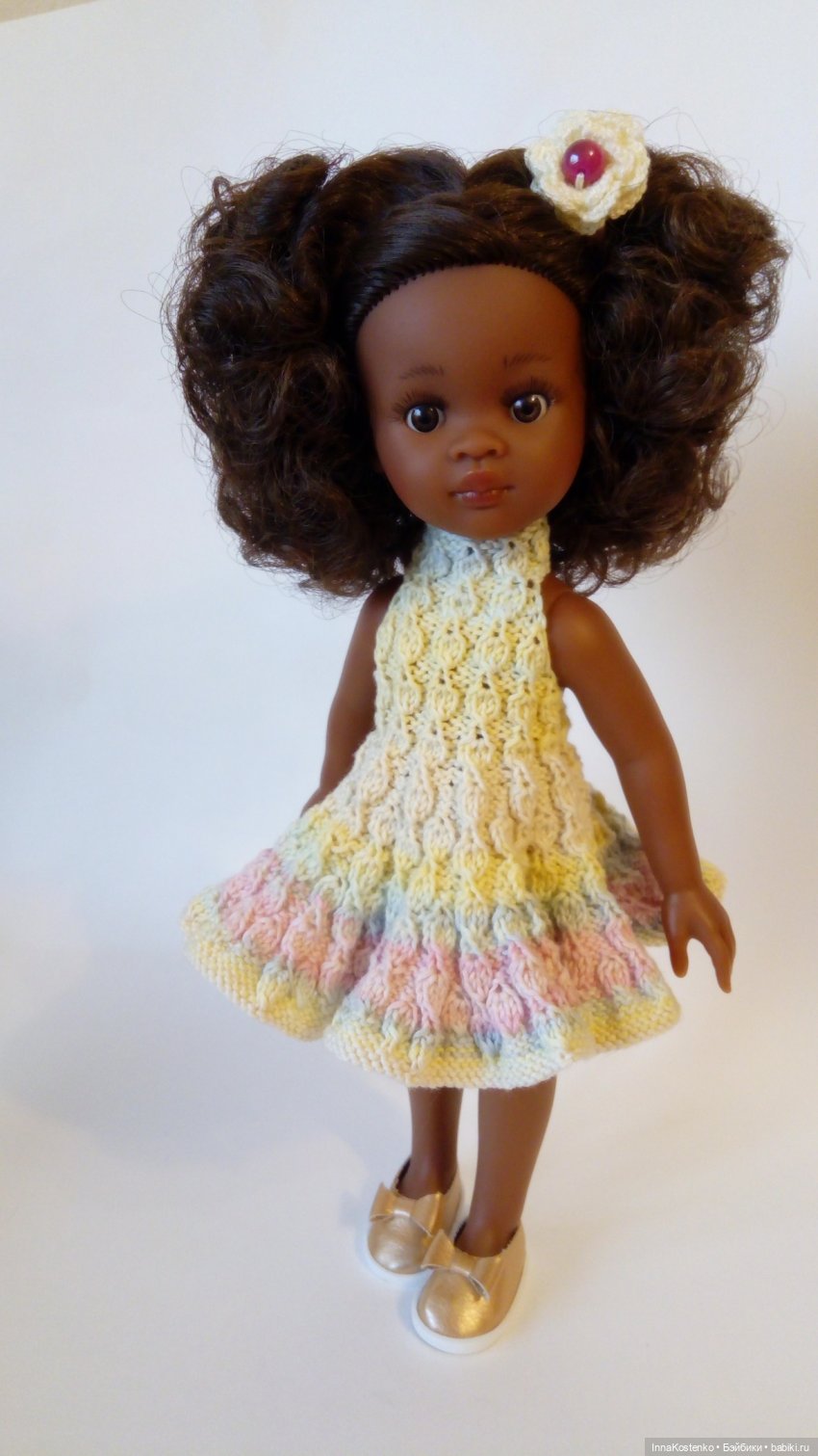 Началось все с приезда в нашу кукольную семью Мари от Vidal Rojas с шоколадным цветом тела и розового платья. Вообще многие девичьи приключения так и начинаются — с платья)) Изначально Мари была в зимнем образе, прямо скажем не по сезону. С шитьём у меня сложно, поэтому в ход пошёл крючок. Через пару дней платьишко было связано, Мари причёсана и готова к съёмке. Одно но — пасмурно.