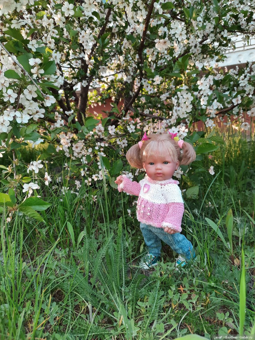 На прогулку полюбоваться апрельским парком вышли с Эльзой (пепита от Антонио Хуан) и Оливией от Вестиды де Азул. Оливия 29-30см ростиком, силикон-винил похож на пепитин, тоже милашка-очаровашка. Обе беляночки.