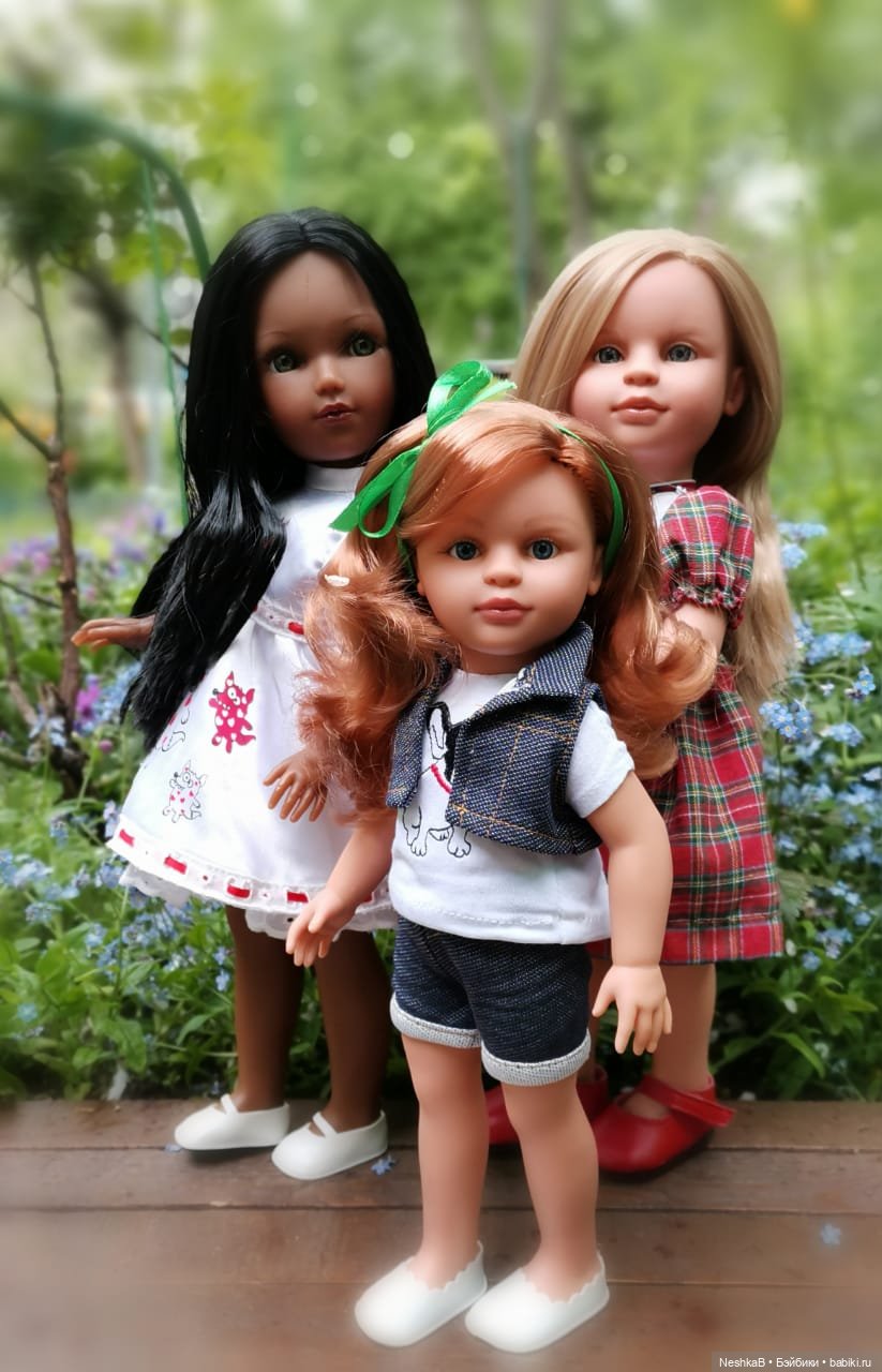 Хочу показать своих Нин испанской фирмы Lamagik, давно заглядывалась на негритяночку, т.к. это моя слабость, еще на 8 марта муж подарил ее. Единственно, что у нее не понравилось, это зазор между шеей и туловищем. У двух белых девочке такого нет. Возможно это мне такая досталась. Но все равно она милая.