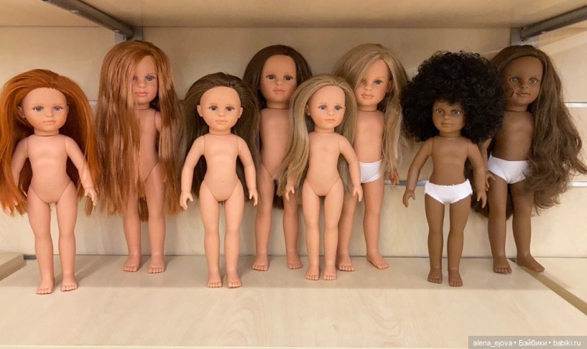 Или вот стоят на полочке все вместе. Остальные как куколки смотрятся, а Нина, как уменьшенная девочка, человек прям. Ну вот так🤷♀️. Приживётся ли, посмотрим.