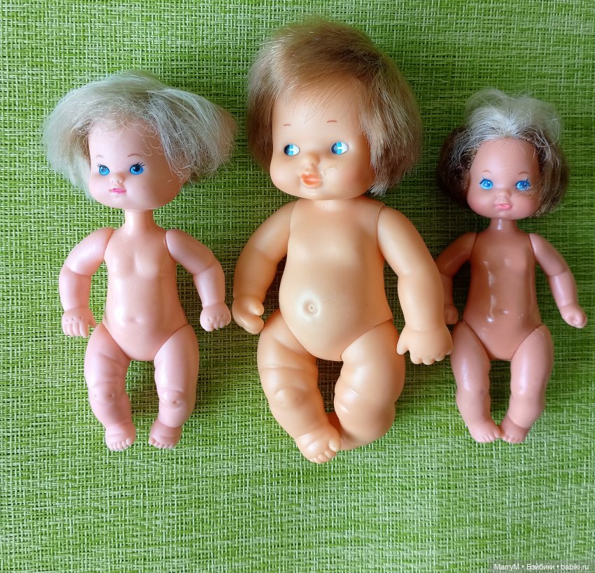 Такие очаровательные пухлики, очень удобные для детей. Можно купать, легкие чтобы взять с собой. Волосики густые и выдерживают все ( судя по винтажным версиям, ни одну не видела с потерей волос)